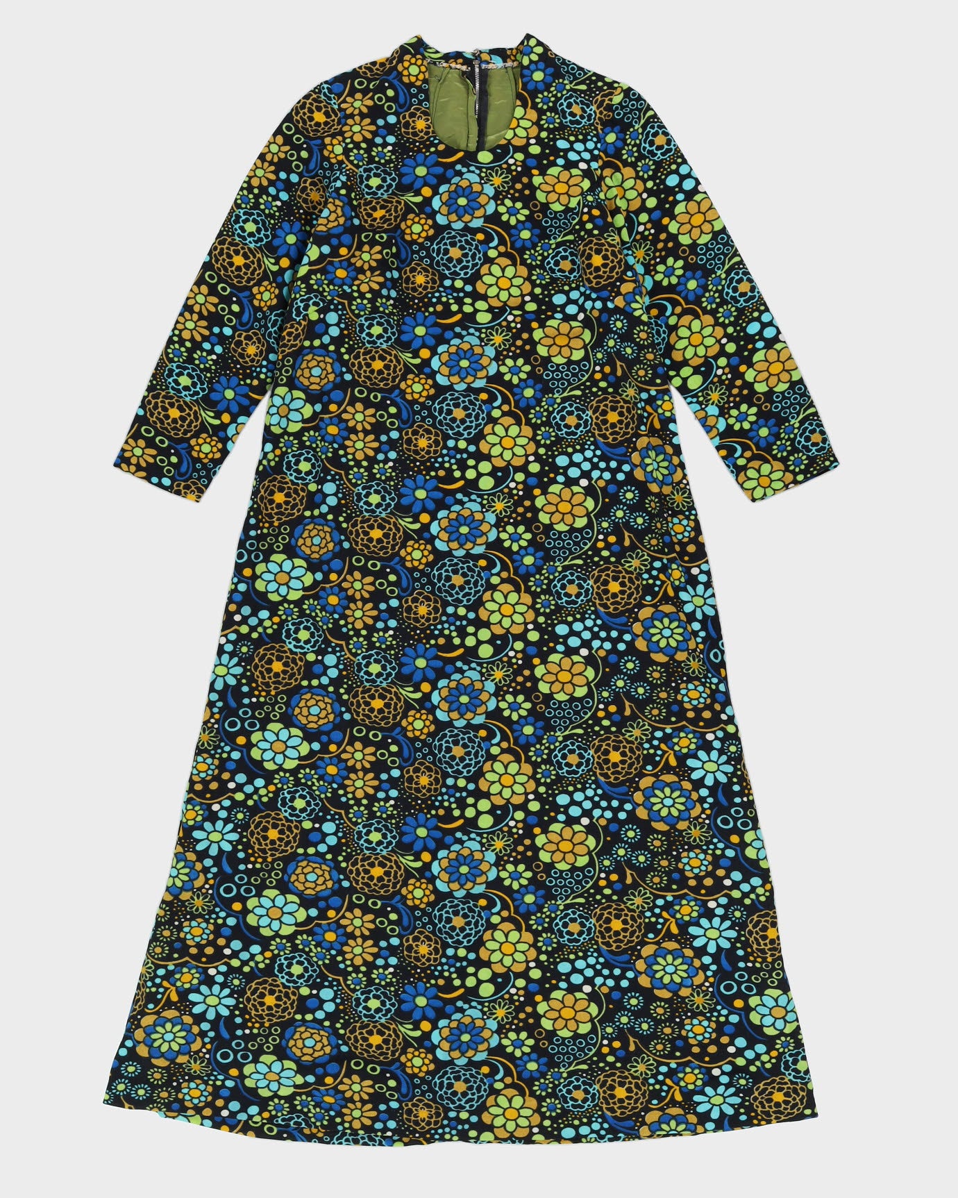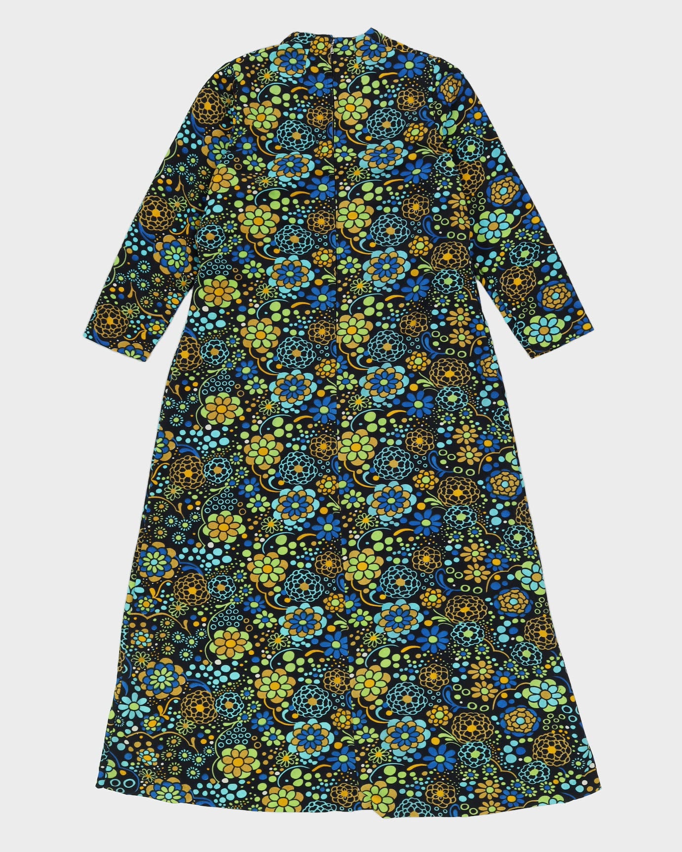 Vintage 1970s Blue Patterned Maxi Dress - S