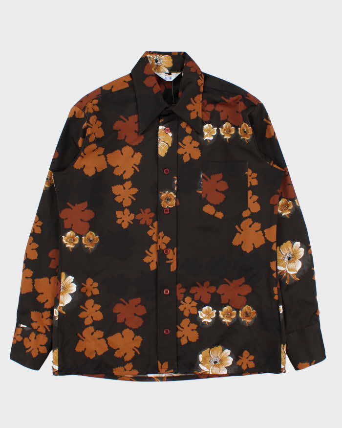 Vintage 1970s Briar House Satin Floral Long Sleeve Shirt - L