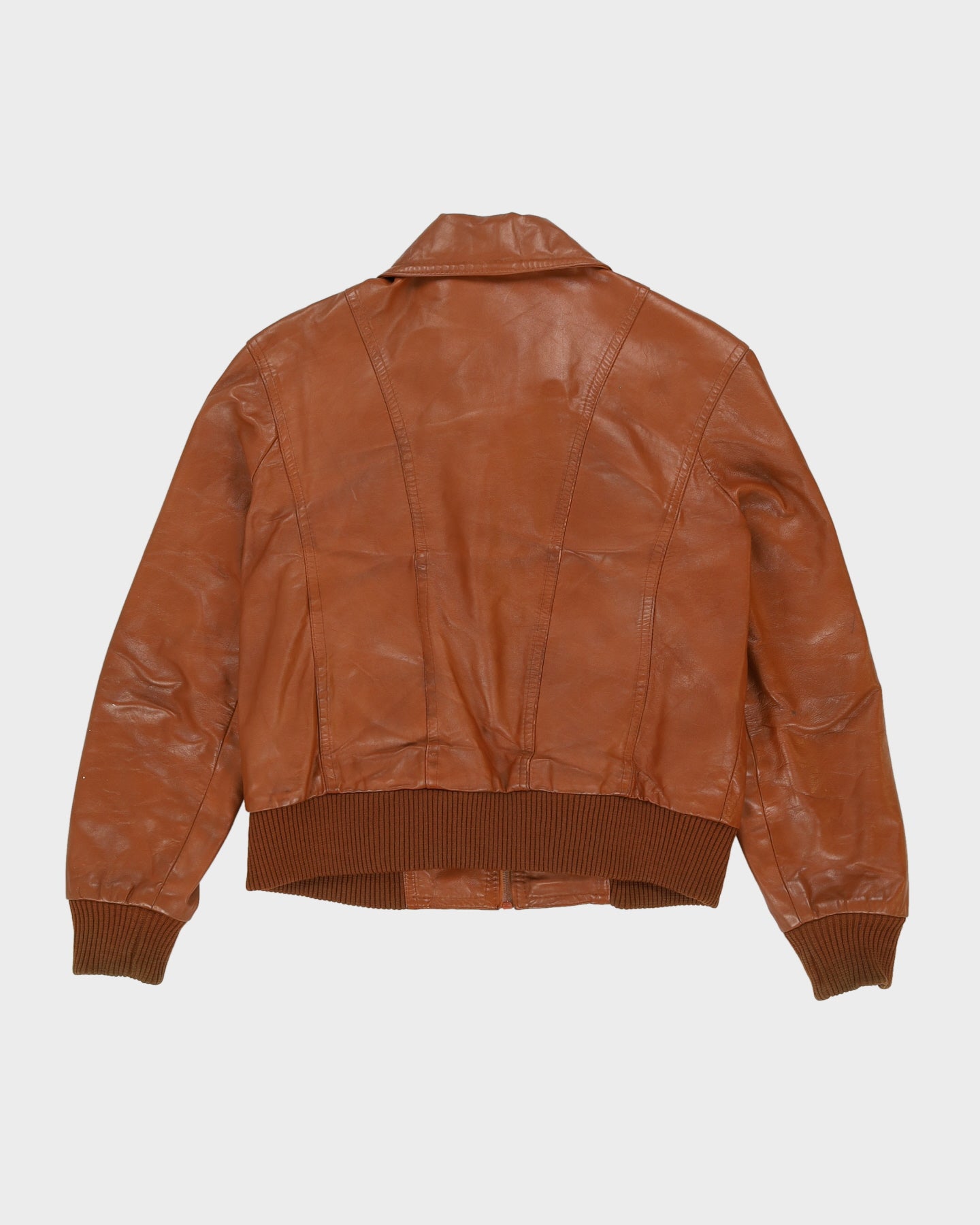 Vintage 1970s Brown Leather Bomber Jacket - XS