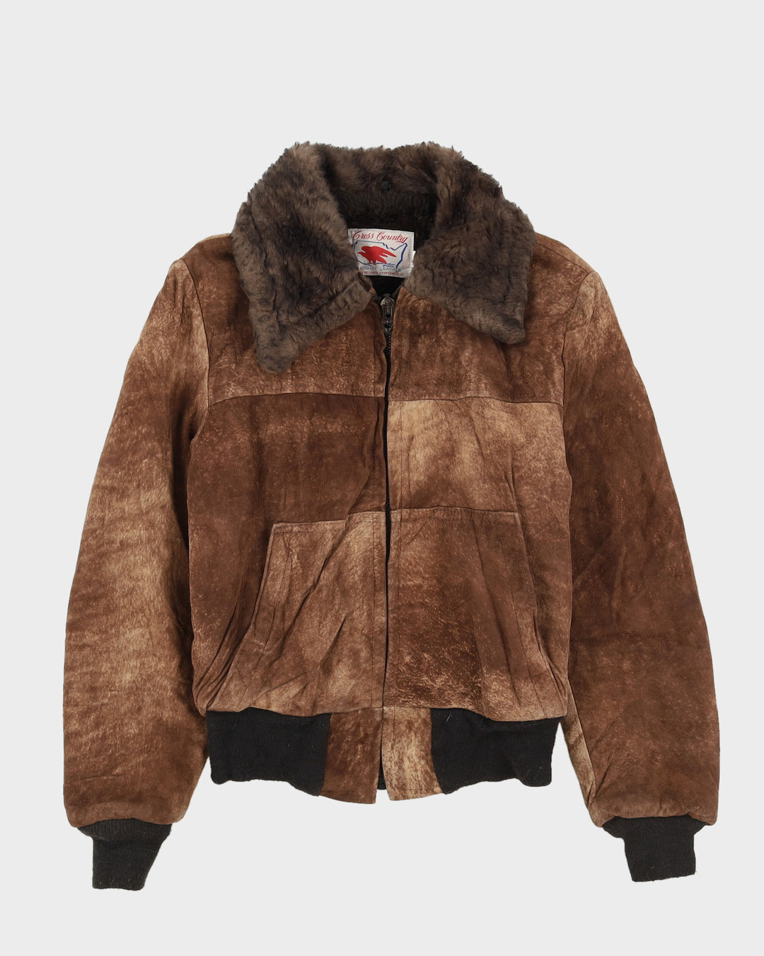 Vintage 1970s Brown Sheepskin Bomber Jacket - XS