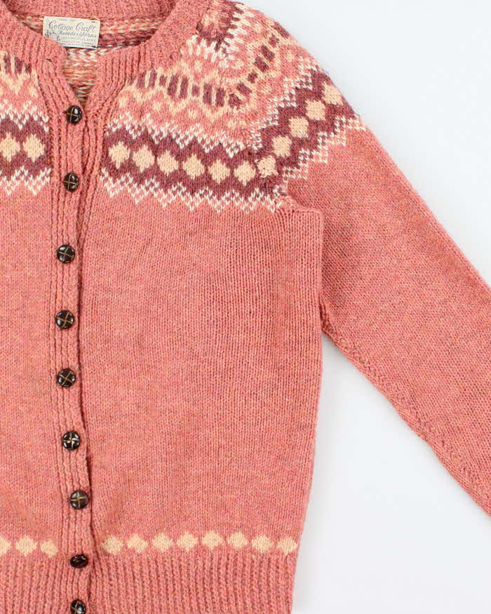 Vintage 1970s Cottage Craft Fair Isle Wool Women's Knit Cardigan - L