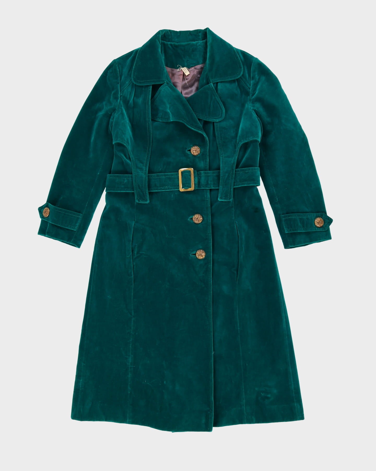 Vintage 1970s Emerald Green Velvet Coat - S / M