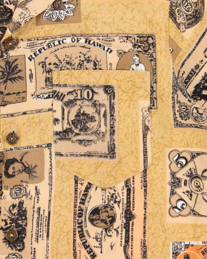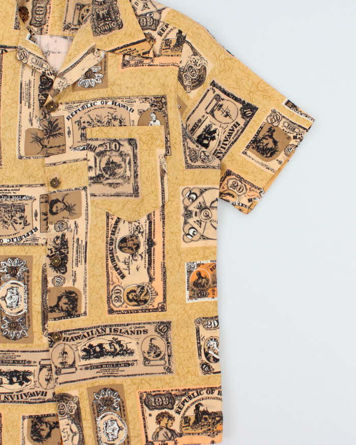 Vintage 1970s Made In USA Dollar Print Hawaiian Shirt - M