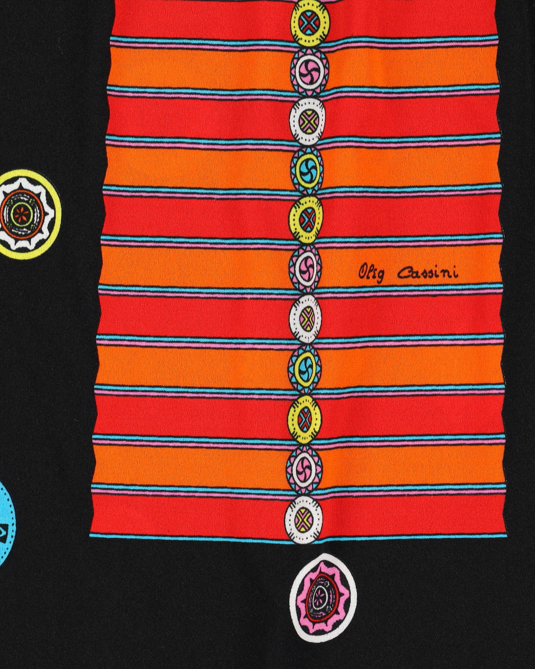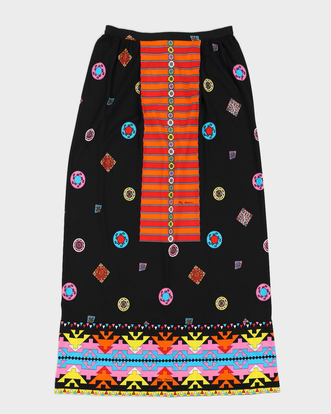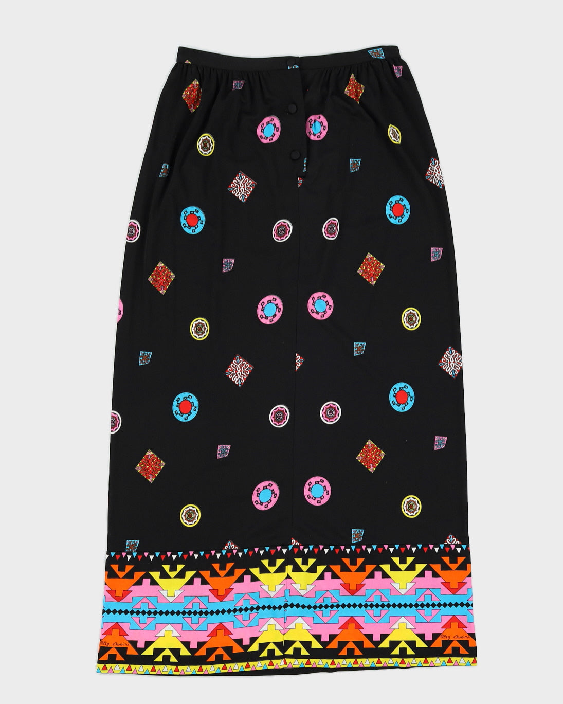 Vintage 1970s Oleg Cassini Black Symbol Print Maxi Skirt - M