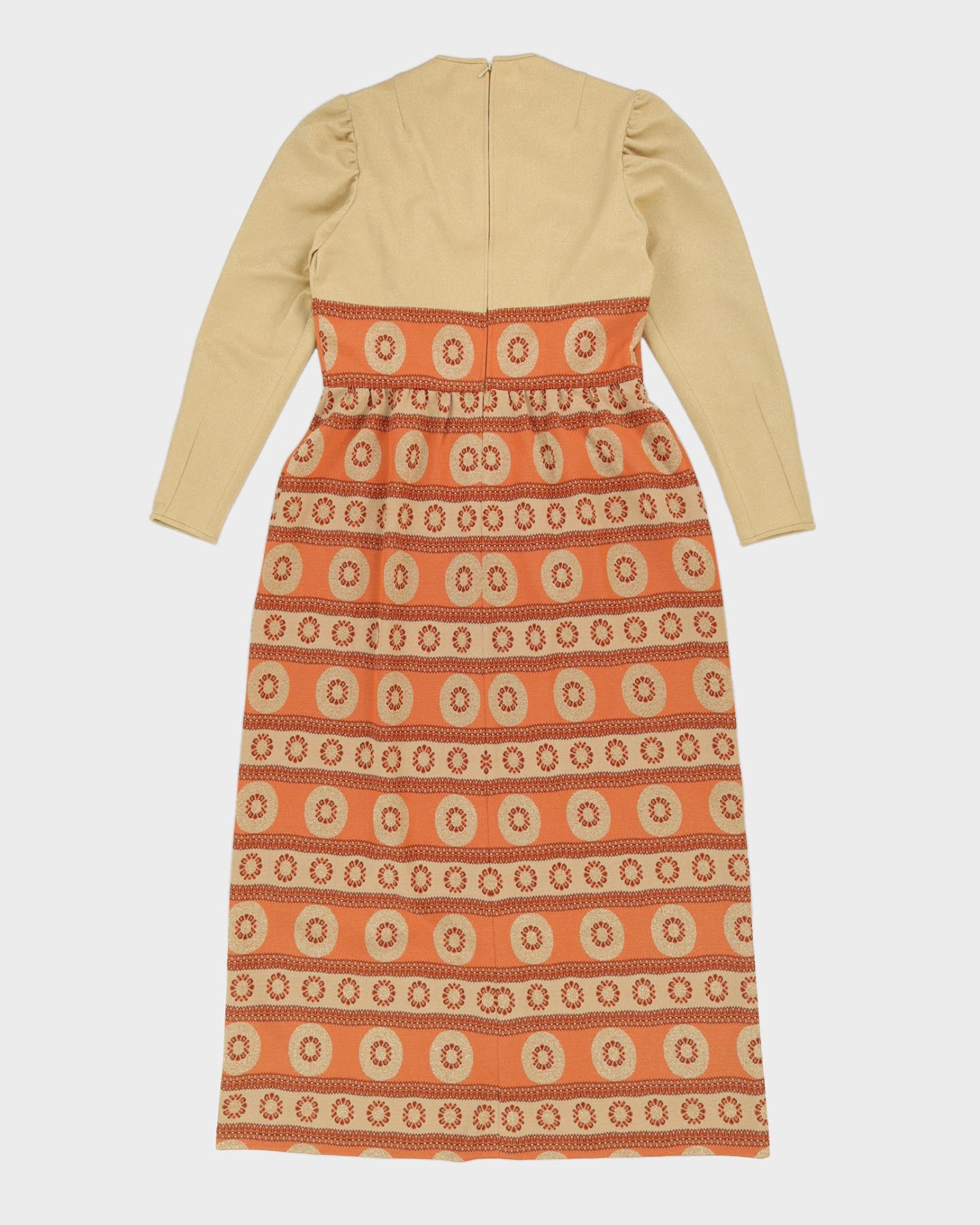Vintage 1970s Orange And Gold Maxi Dress - M