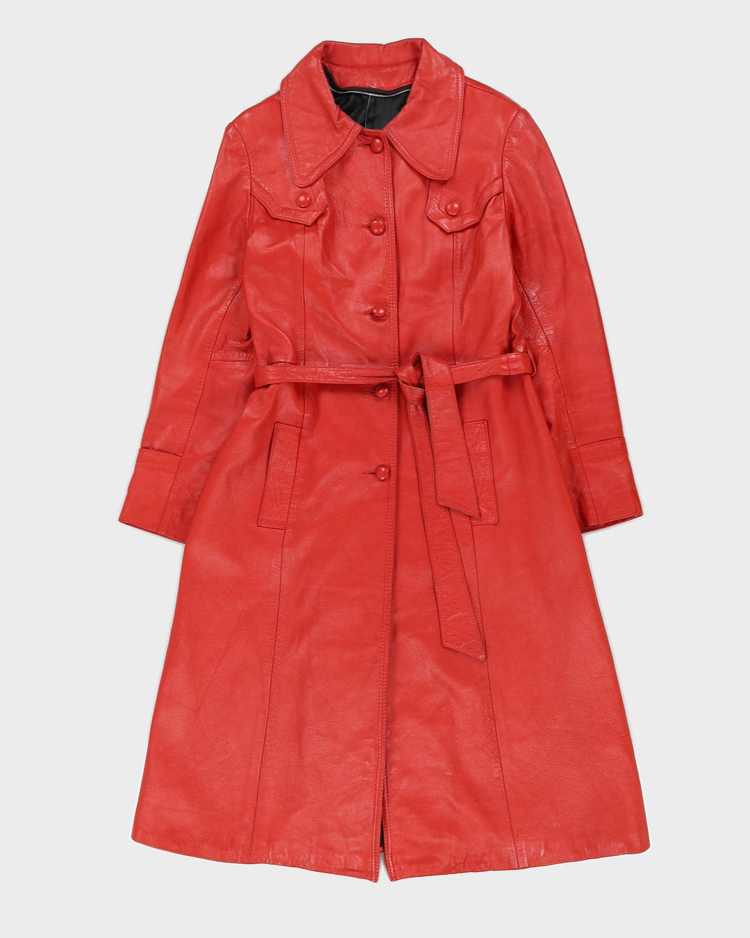 Vintage 1970s Red Leather Coat - S
