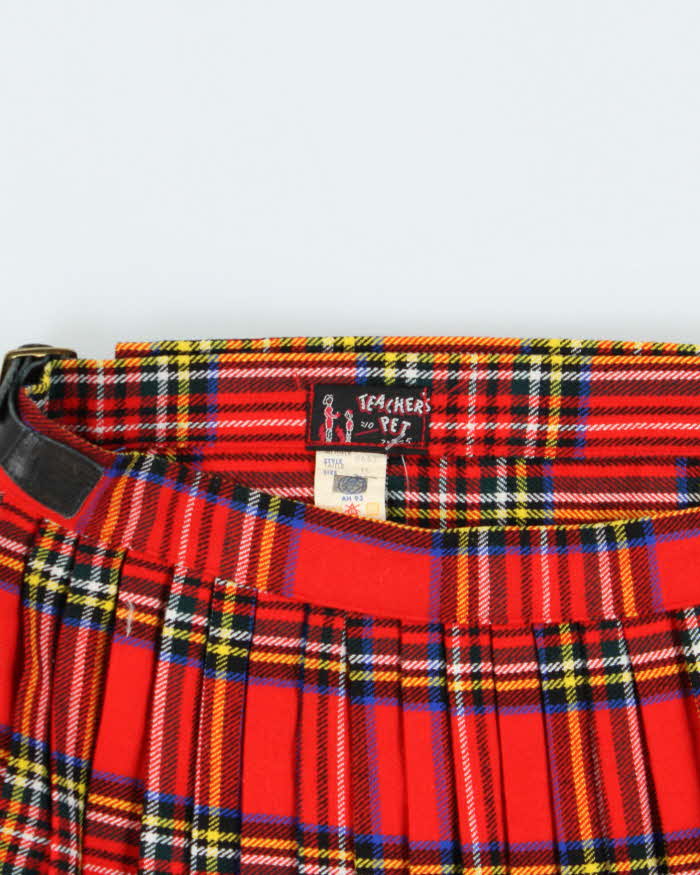 Vintage 1970s Teachers Pet Union Made Wool Blend Tartan Women's Pleated Wrap Skirt - S