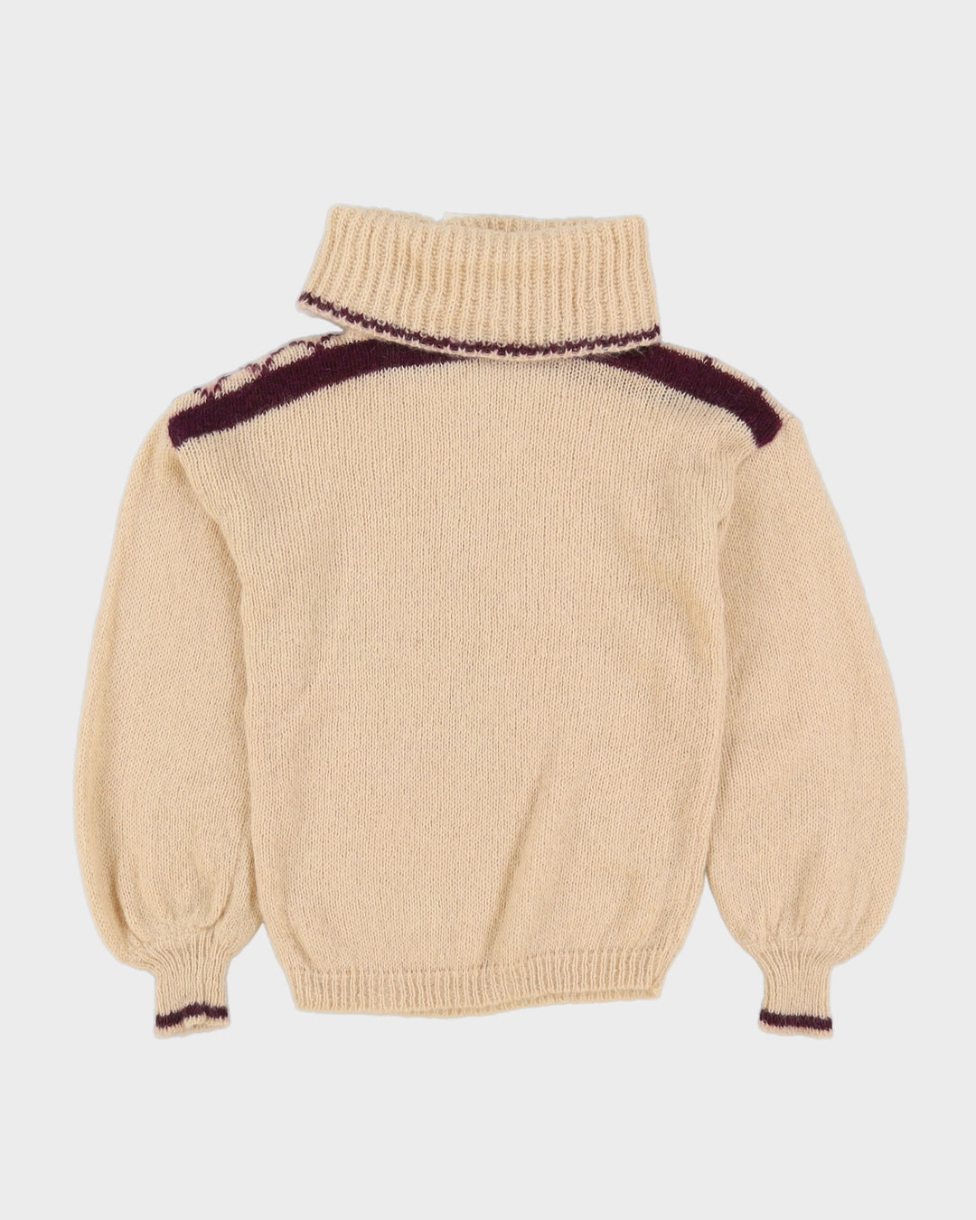 Vintage 1980s Beige Roll Neck Knitted Jumper - S