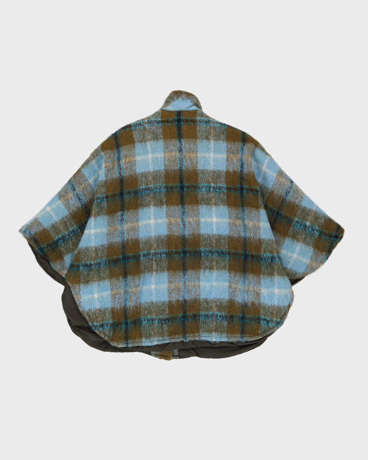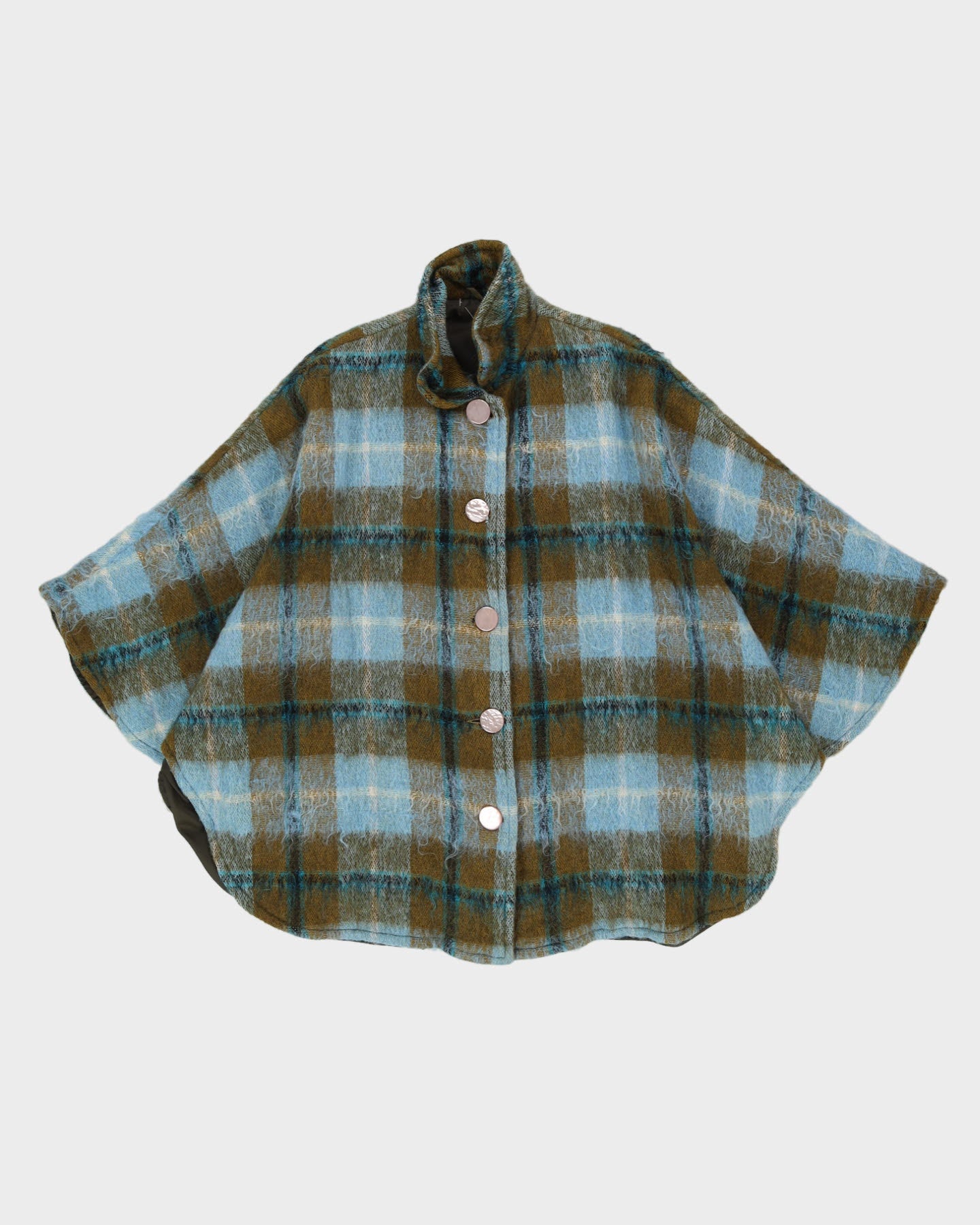 Vintage 1980s Blue Checked Mohair Cape - M