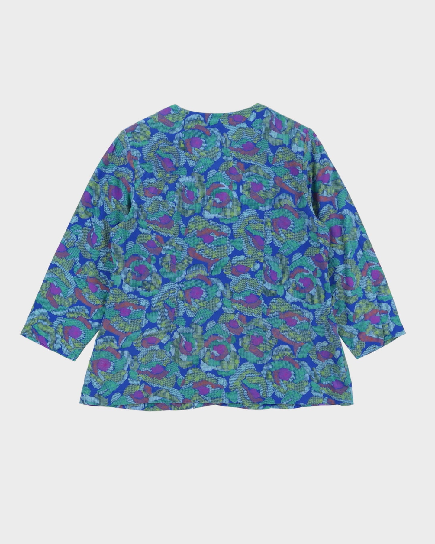 Vintage 1980s Blue Silk Patterned Blouse - S