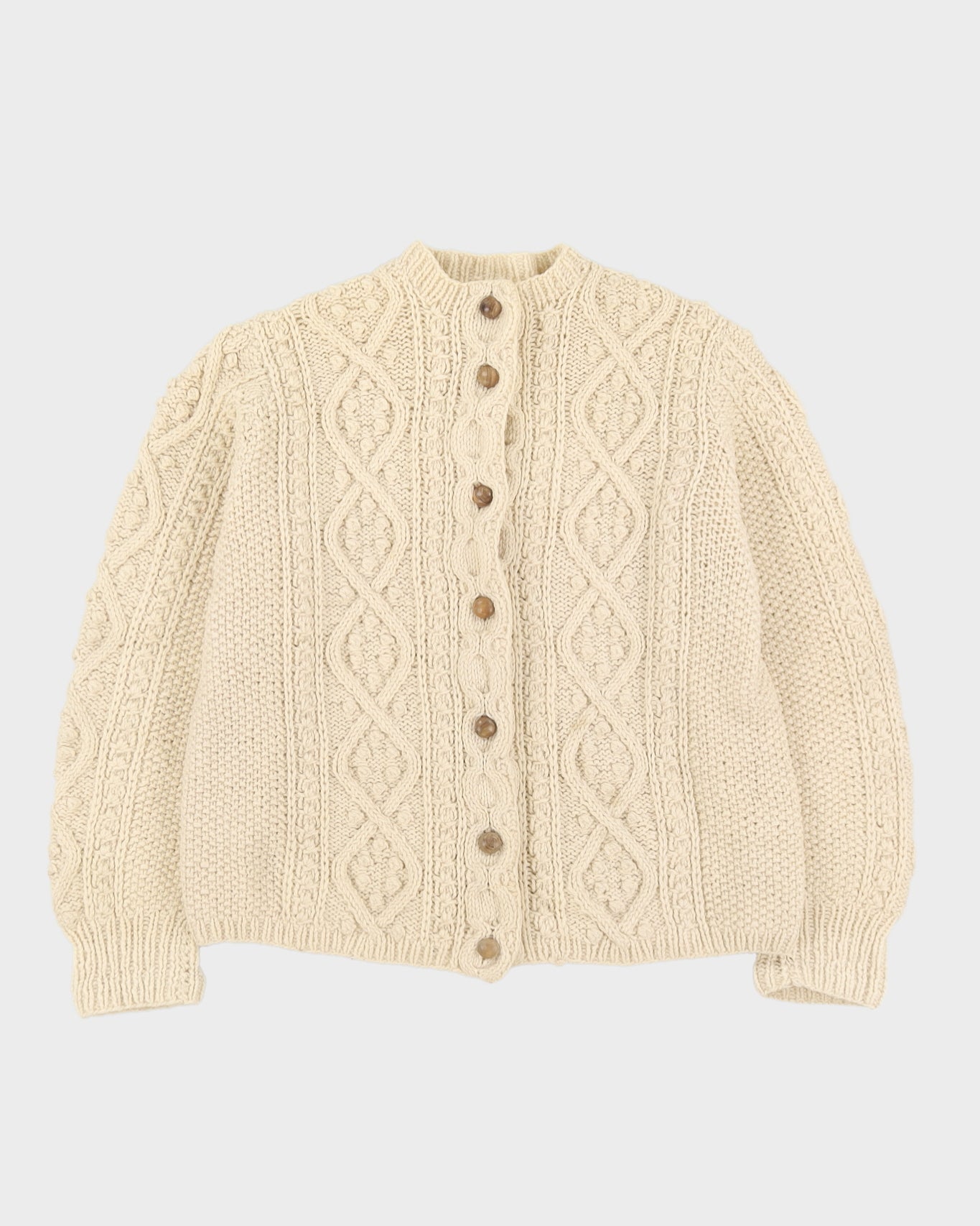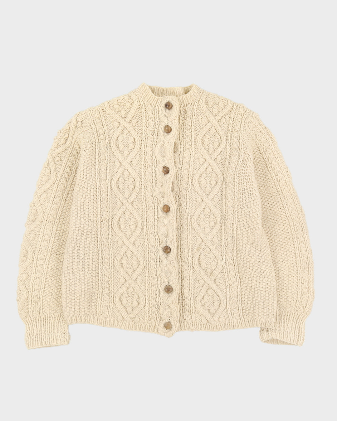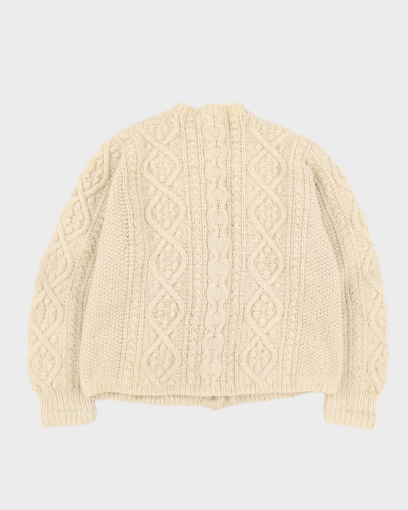 Vintage 1980s Cream Aran Wool Cardigan - L