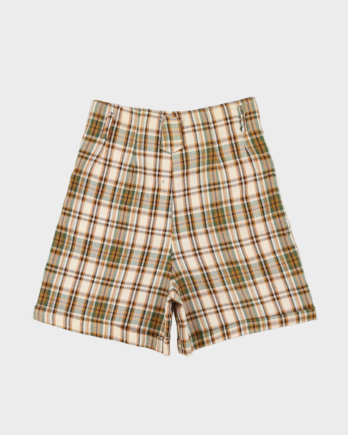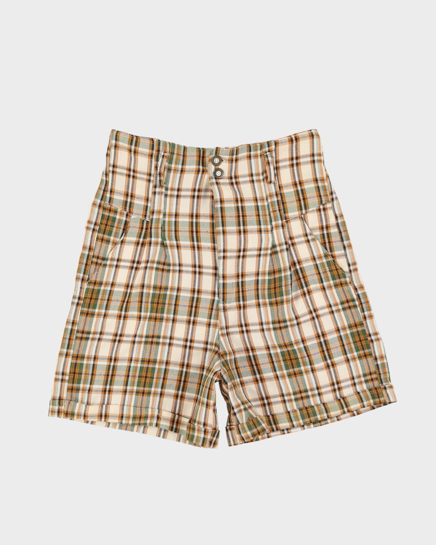 Vintage 1980s Cream Checked Shorts - S