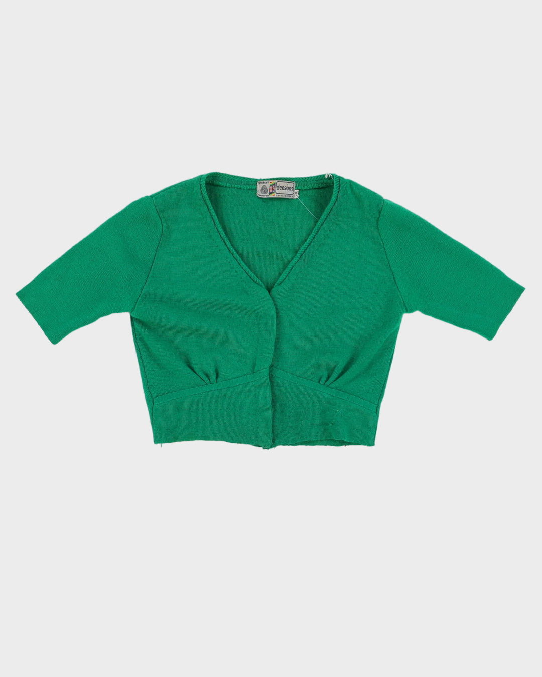 Vintage 1980s Green Cropped Bolero Knitted Cardigan - XS / S