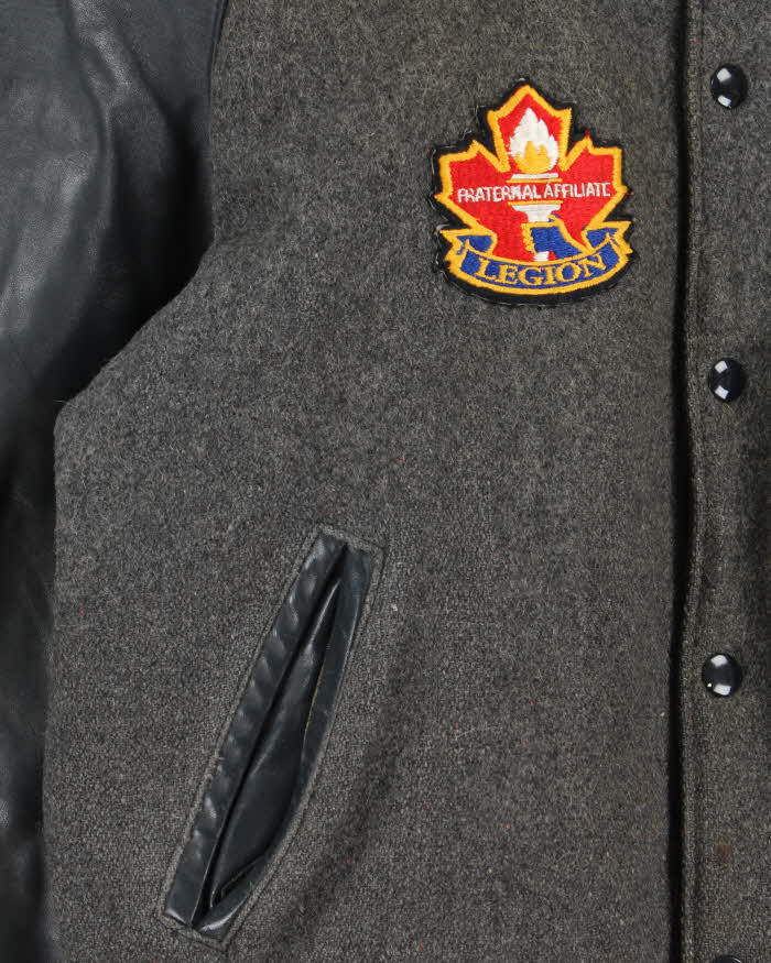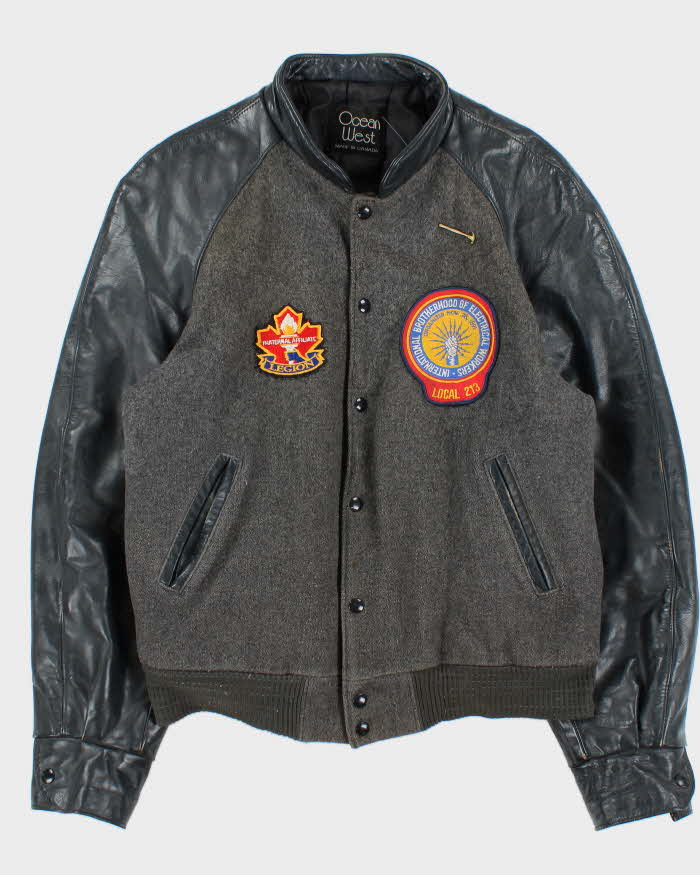 Vintage 1980s Ocean West Quilt Lined Wool Leather Varsity Bomber Jacket - L