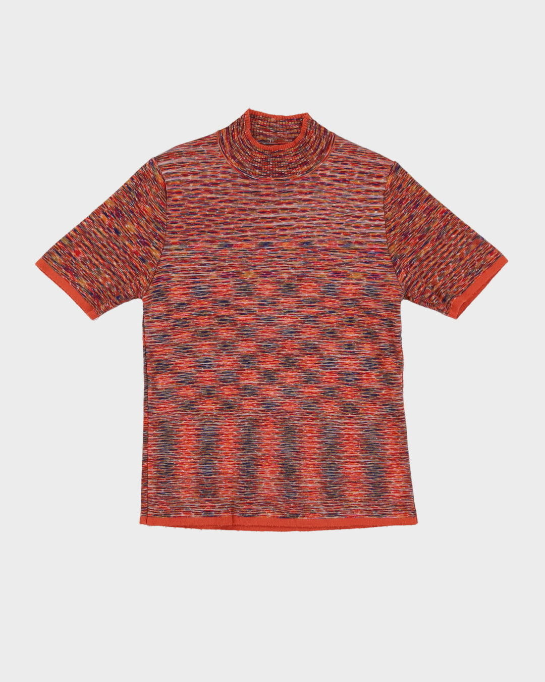 Vintage 1980s Orange Patterned Knitted Short Sleeve Top - XS