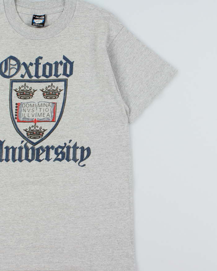 Vintage 1980s Oxford University Screen Stars Single Stitch Made In Ireland Marl Grey Crewneck T-Shirt - M