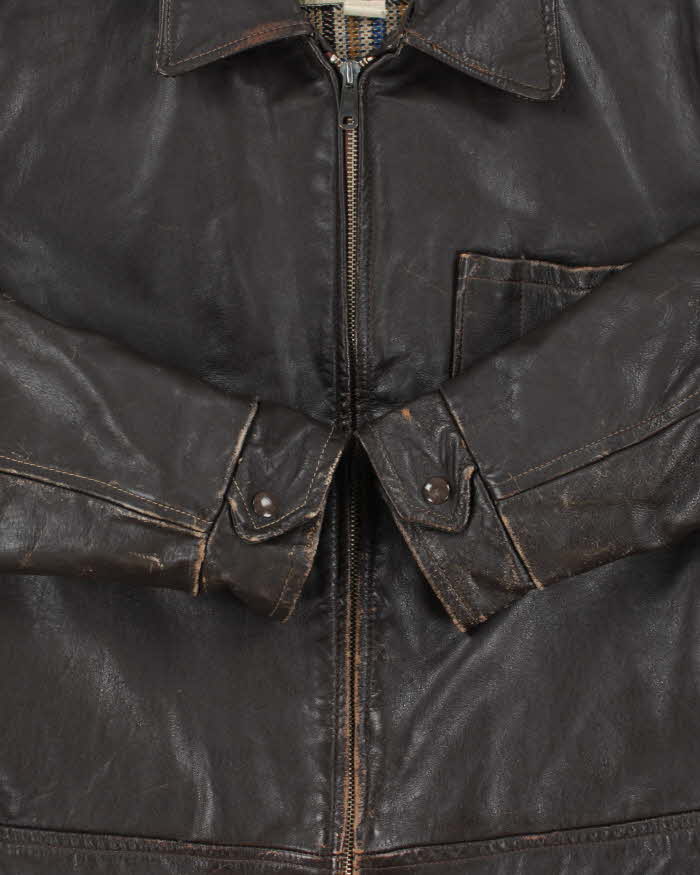 Vintage 1980s Peerless Garments Blanket Lined Distressed Boxy Leather Jacket - M