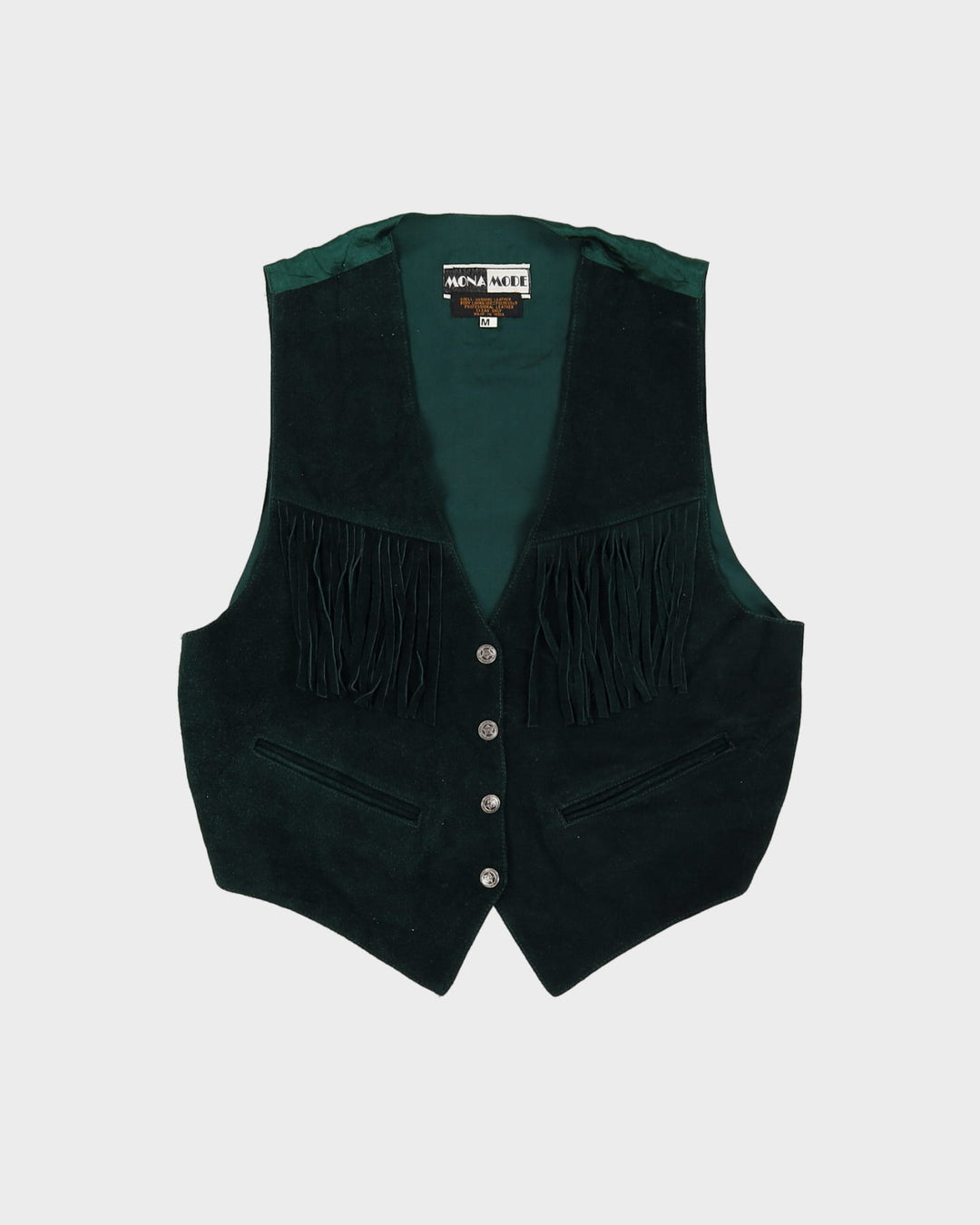 Vintage 1980s Western Dark Green Suede Fringe Waistcoat - M