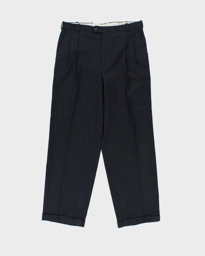 Vintage 1980s Yves Saint Laurent Pleated Wool Blend Wide Straight Leg Trousers - W32 L29
