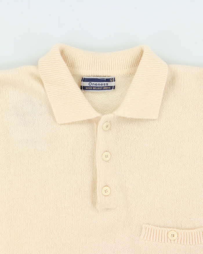 Vintage 1990s Cream Cashmere Wool Blend Collared Knit Jumper - L
