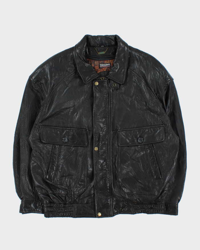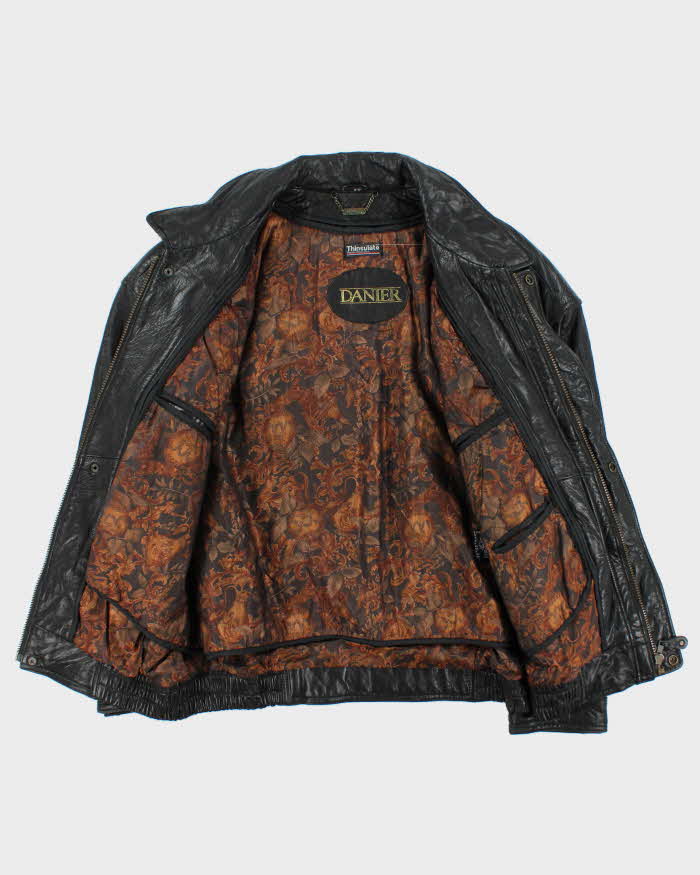 Vintage 1990s Danier Thinsulate Baroque Lined Leather Flight Bomber Jacket - M