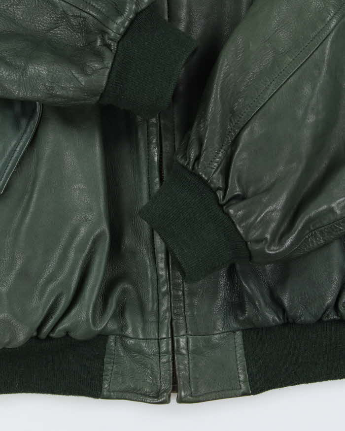 Vintage 1990s Earth Tone Green Calfskin Leather Bomber Jacket - XL