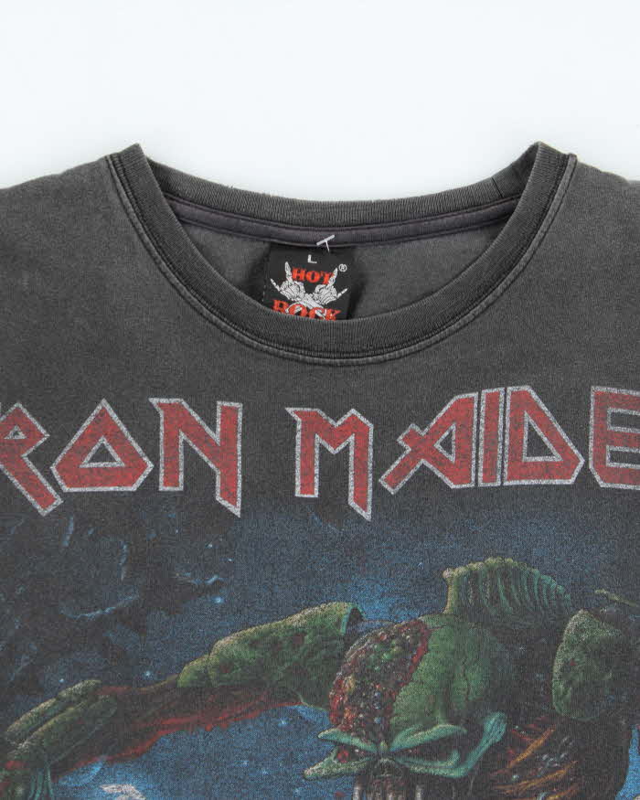 Vintage 1990s Hot Rock Iron Maiden Faded Black Crewneck T-Shirt - L
