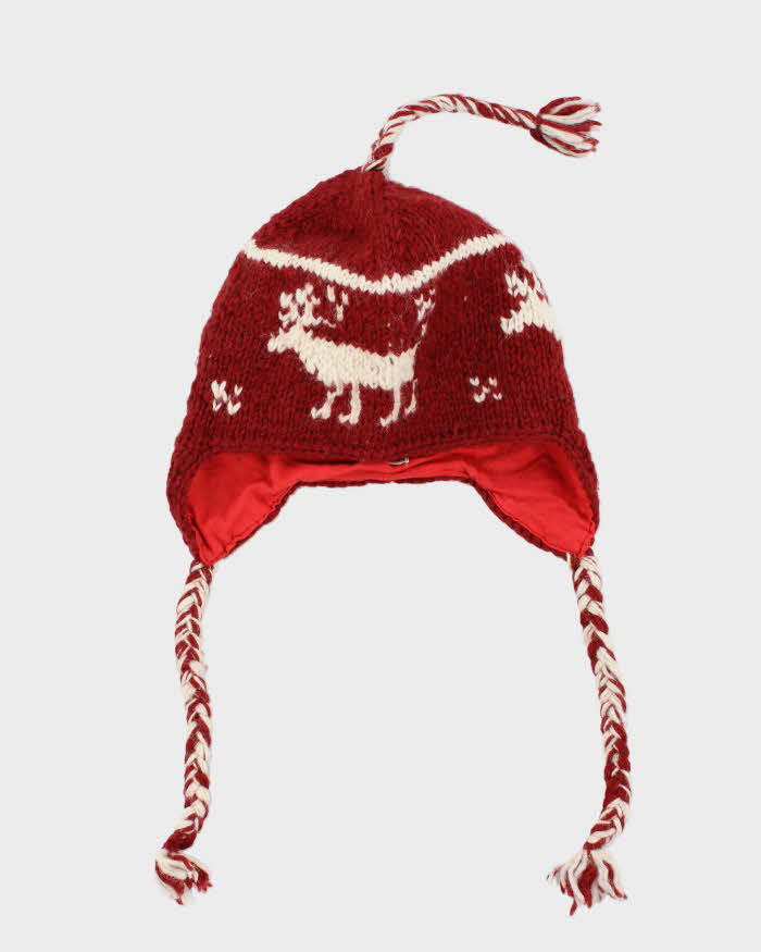 Vintage 1990s Sharanel Wool Nordic Earflap Knit Beanie - OS