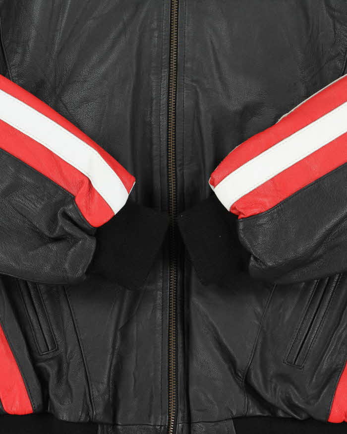 Vintage 1990s USA Spell-Out Flag Leather Collared Bomber Jacket - XL