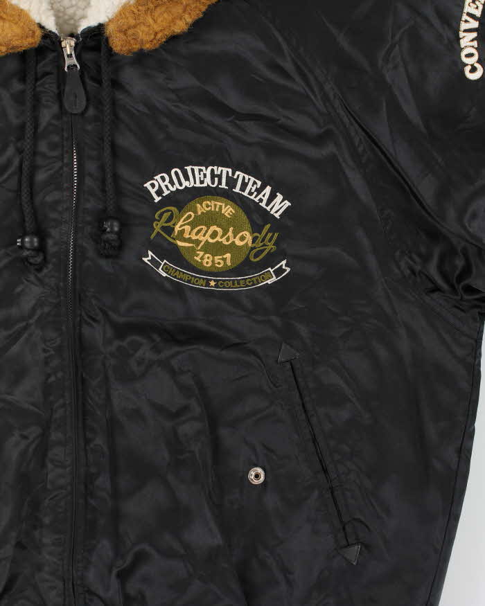Vintage 1990s Vache Club Satin Shearling Lined Hooded Bomber Jacket - L