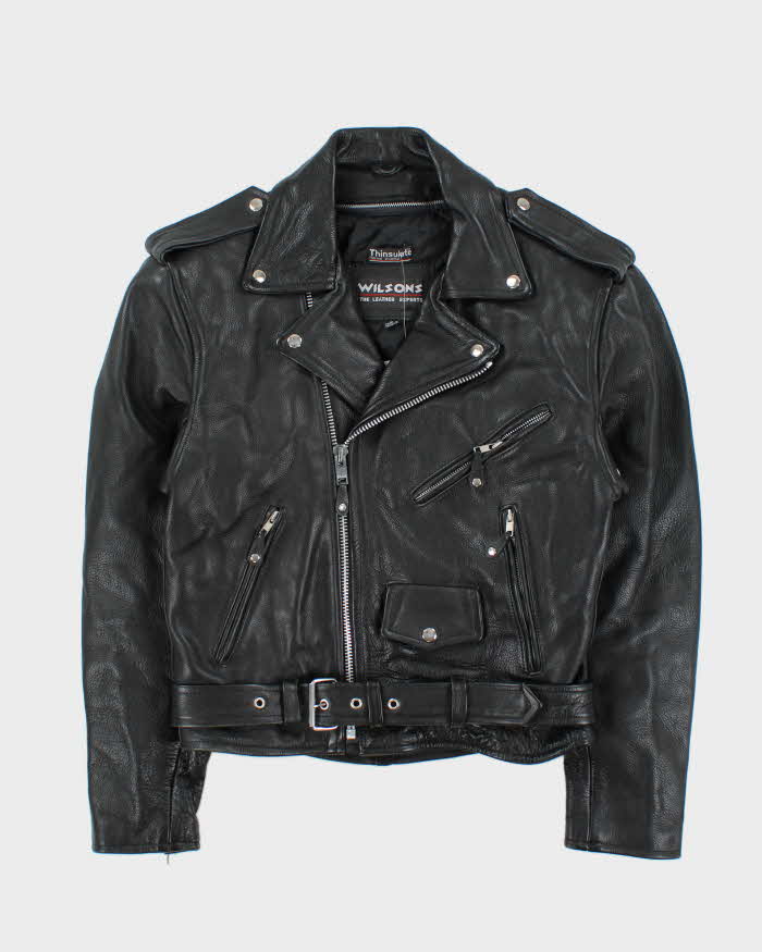 Vintage 1990s Wilson's Thinsulate Lined Heavyweight Classic Leather Biker Jacket - S