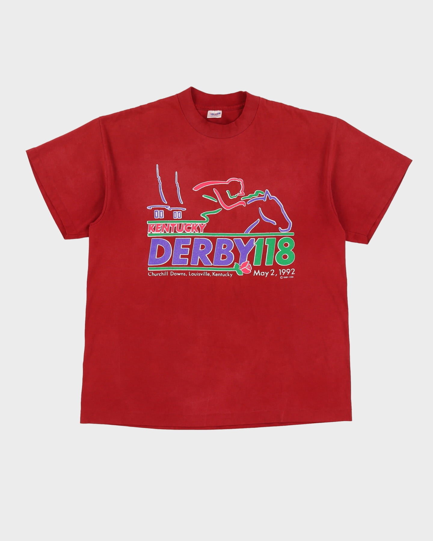 1992 Kentucky Derby Burgundy Single Stitch T-Shirt - L / XL