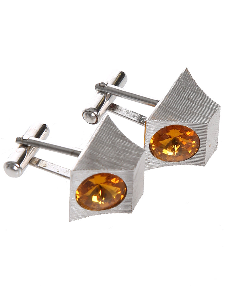 Vintage 60s/70s Silvertone and Amber Crystal Modernist Cufflinks