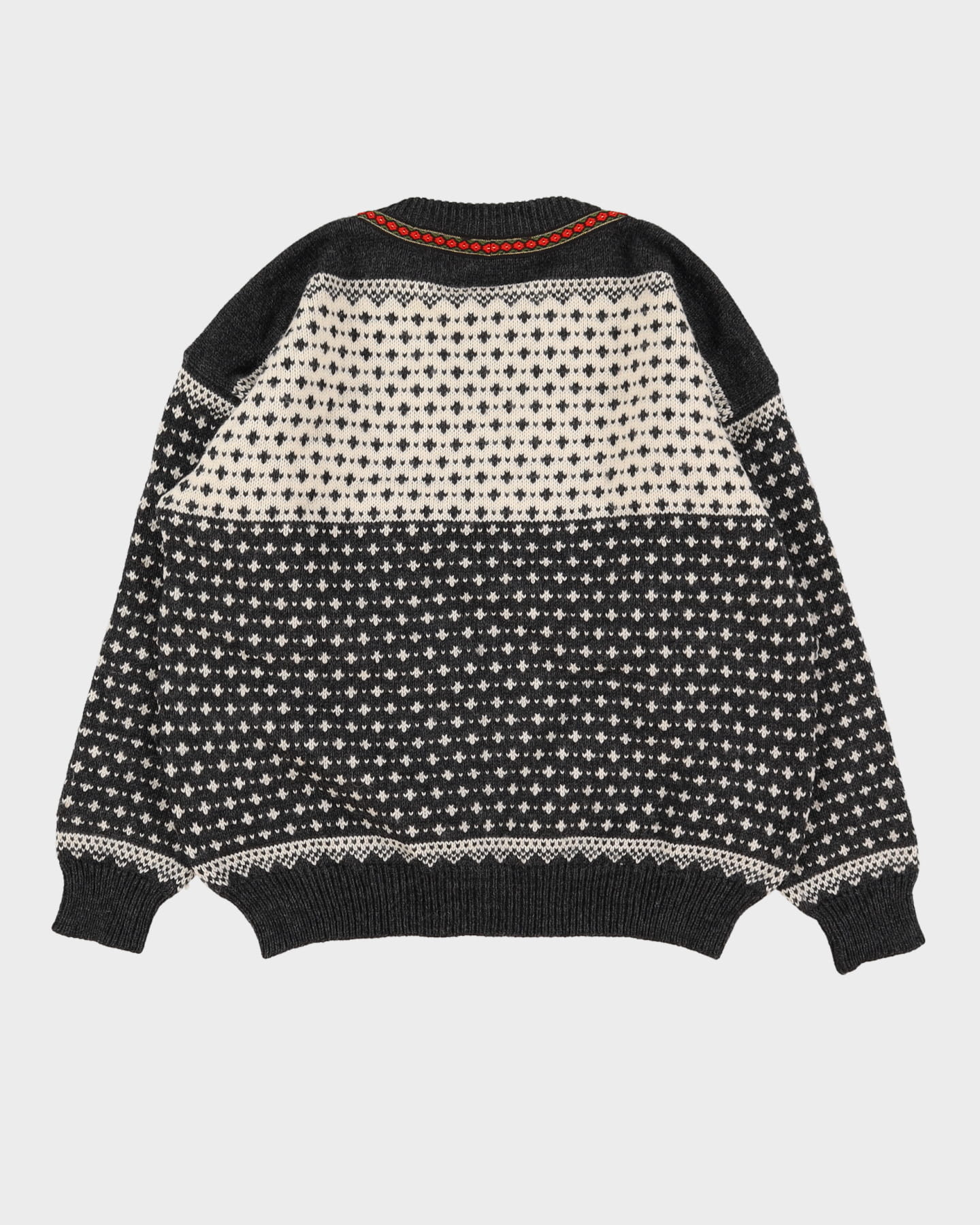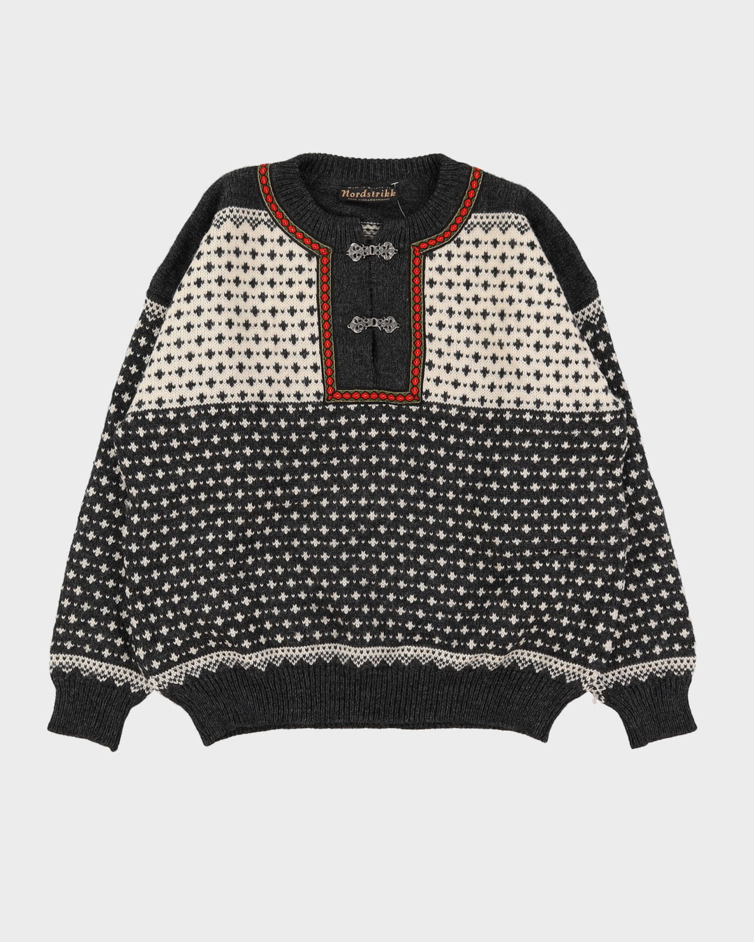 Vintage 60s Nordstrikk Grey Patterned Knitted Sweater - XL