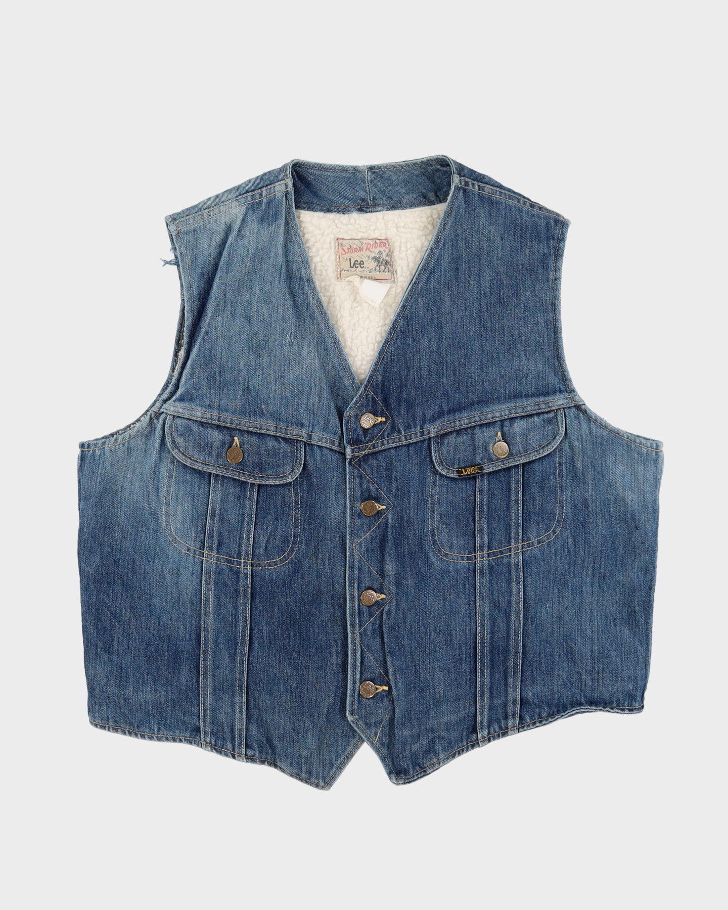 Vintage 60s Storm Rider by Lee Sleeveless Sherpa-Lined Denim Jacket - L