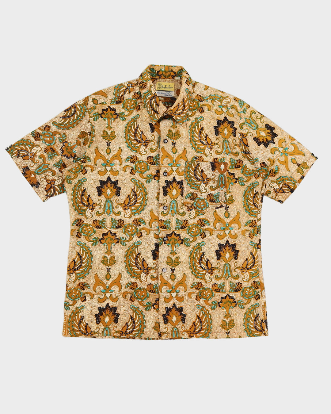 Vintage 70s Ban Teck Soon Yellow 100% Java Batik Shirt - S