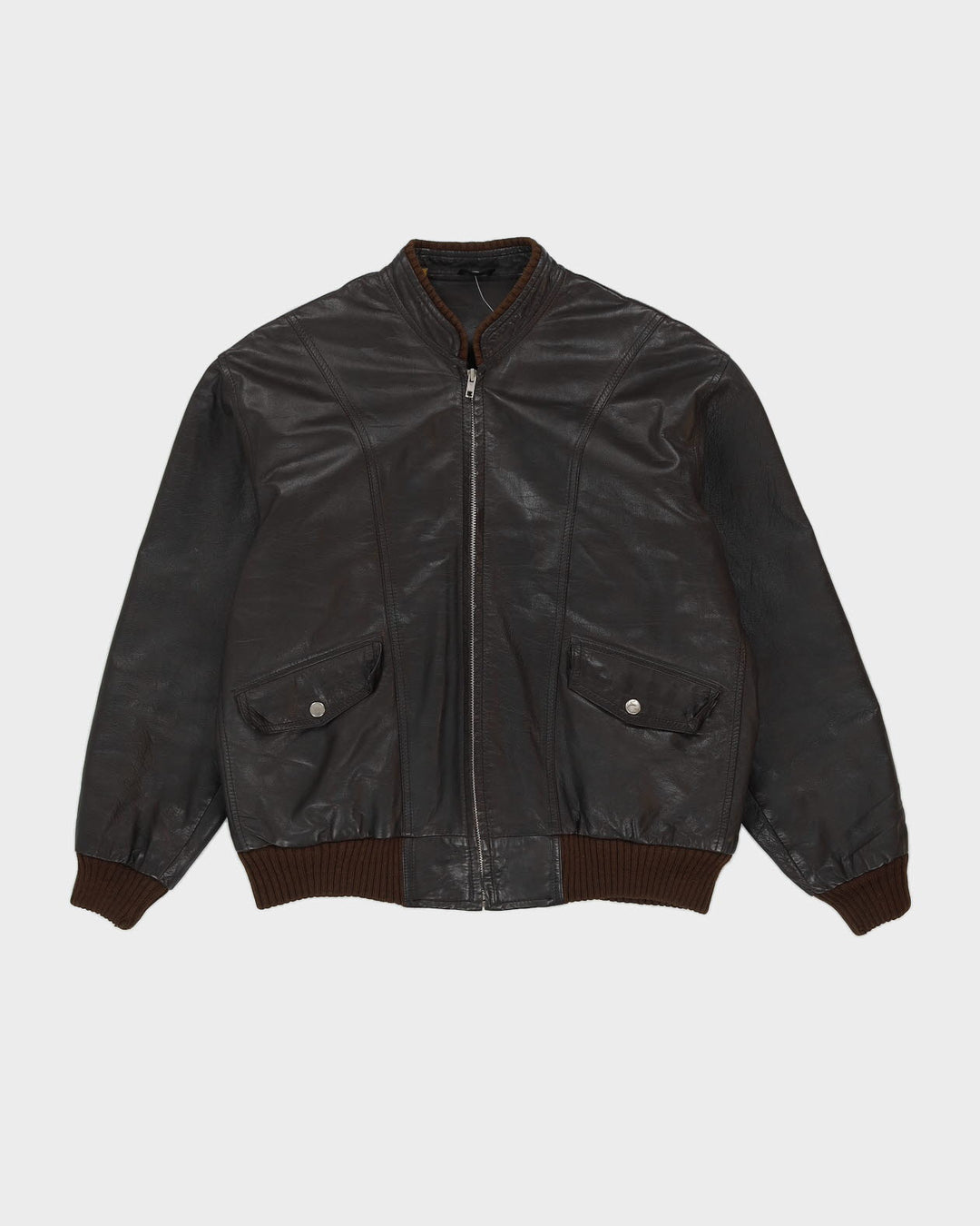 Vintage 70s Bomber Brown Fleece Lined Leather Jacket - L