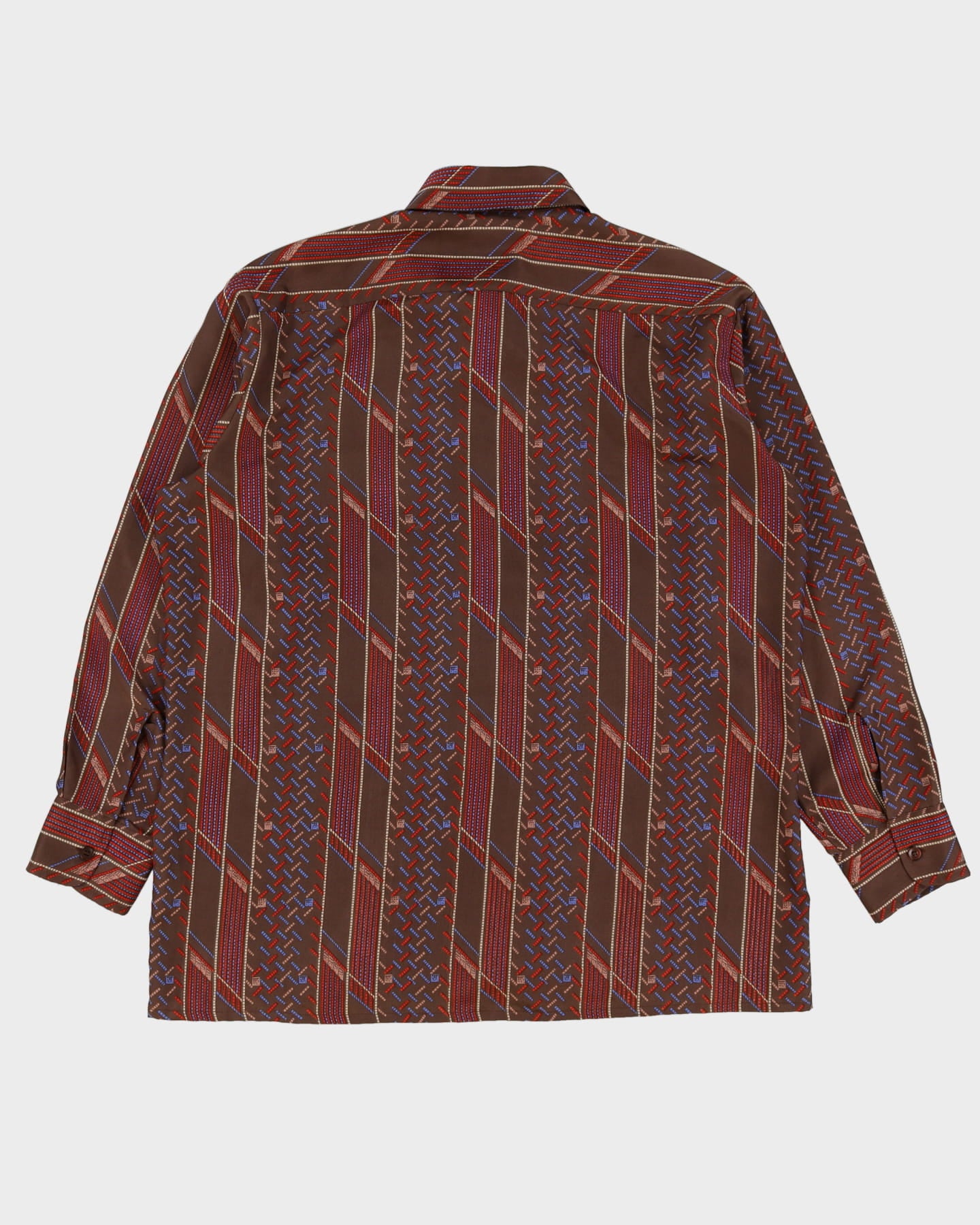 Vintage 70s Brown Repeat Pattern Disco Shirt - XXL