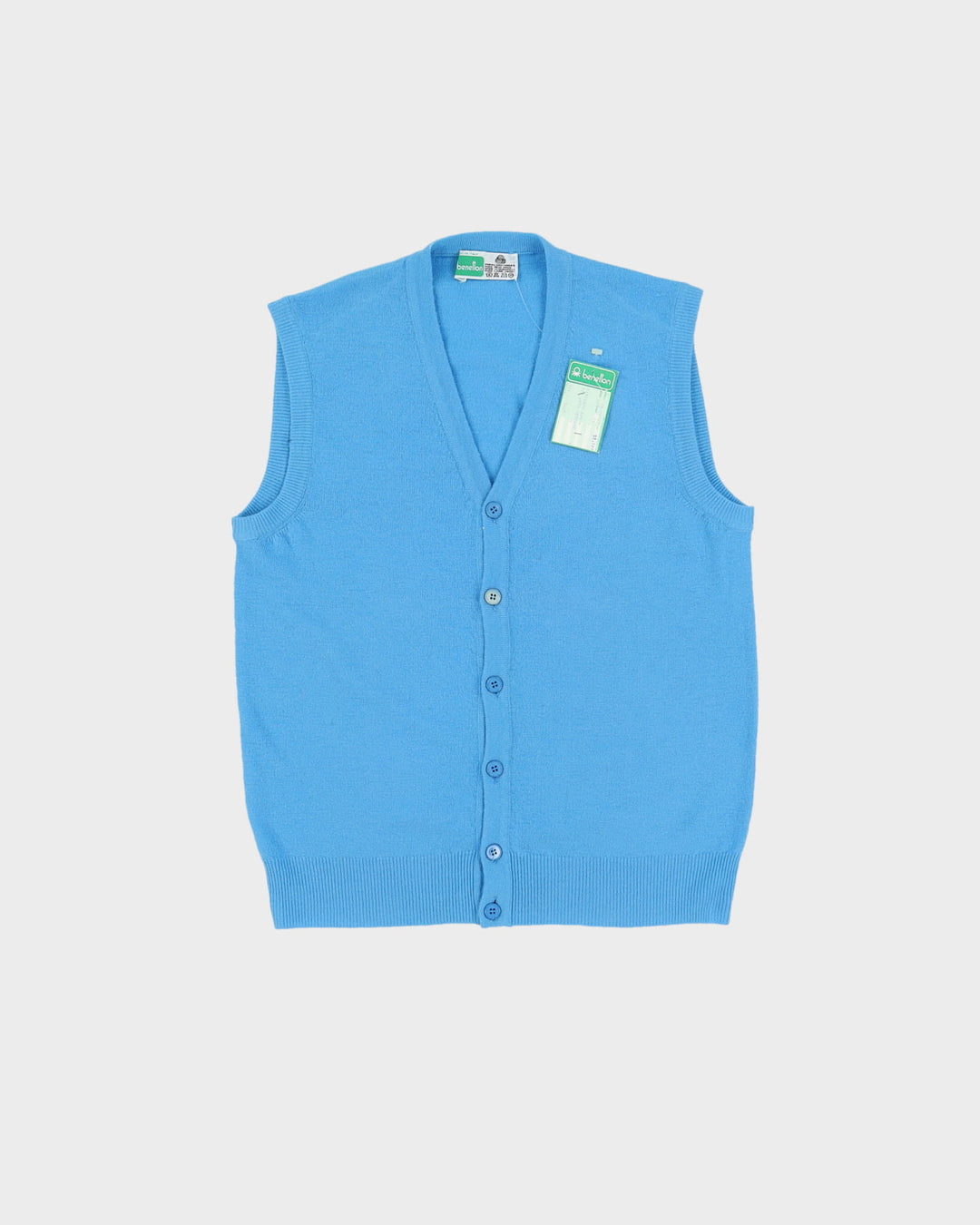 Vintage 70s Deadstock With Tags Benneton Blue Cardigan Sweater Vest / Tank Knit - S / M