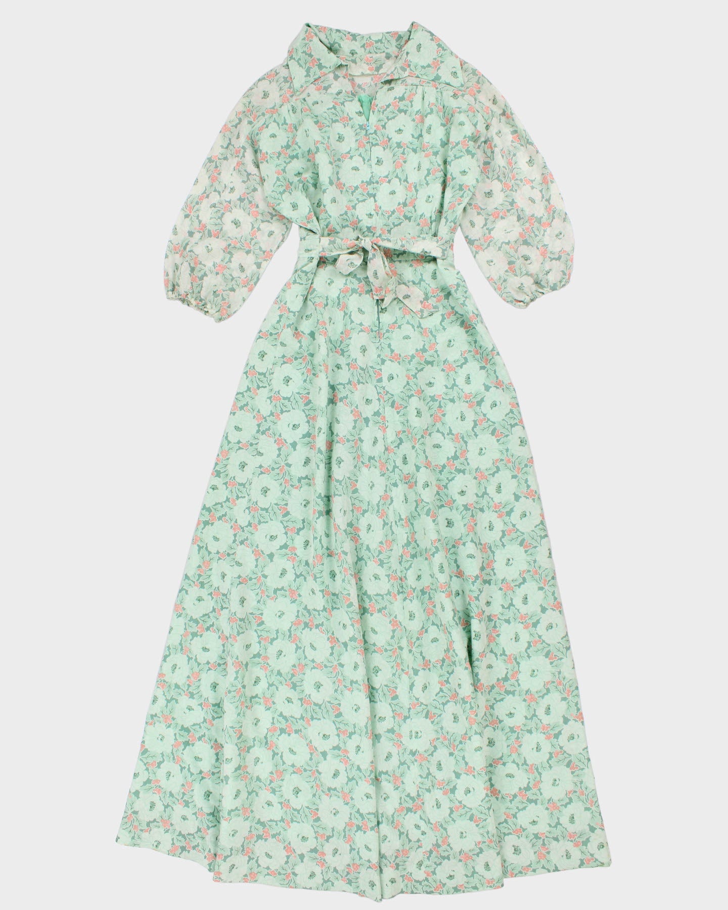 Vintage 70s Handmade Green Floral Maxi Dress - S