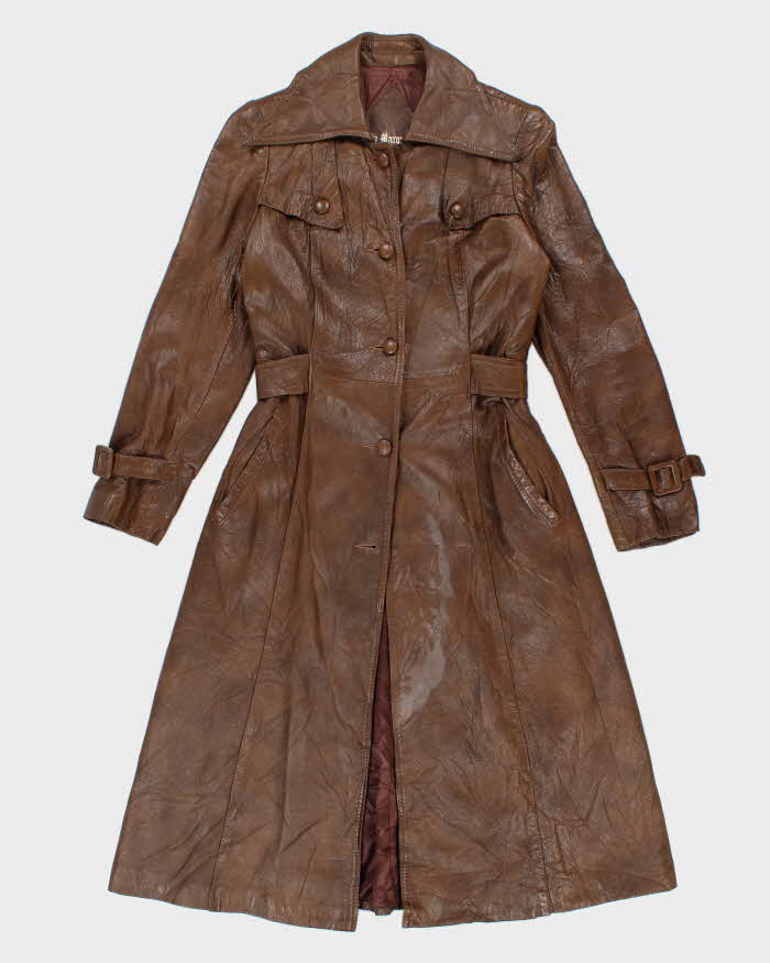 Vintage 70s Marquis Of London Classic Brown Leather Trench - S