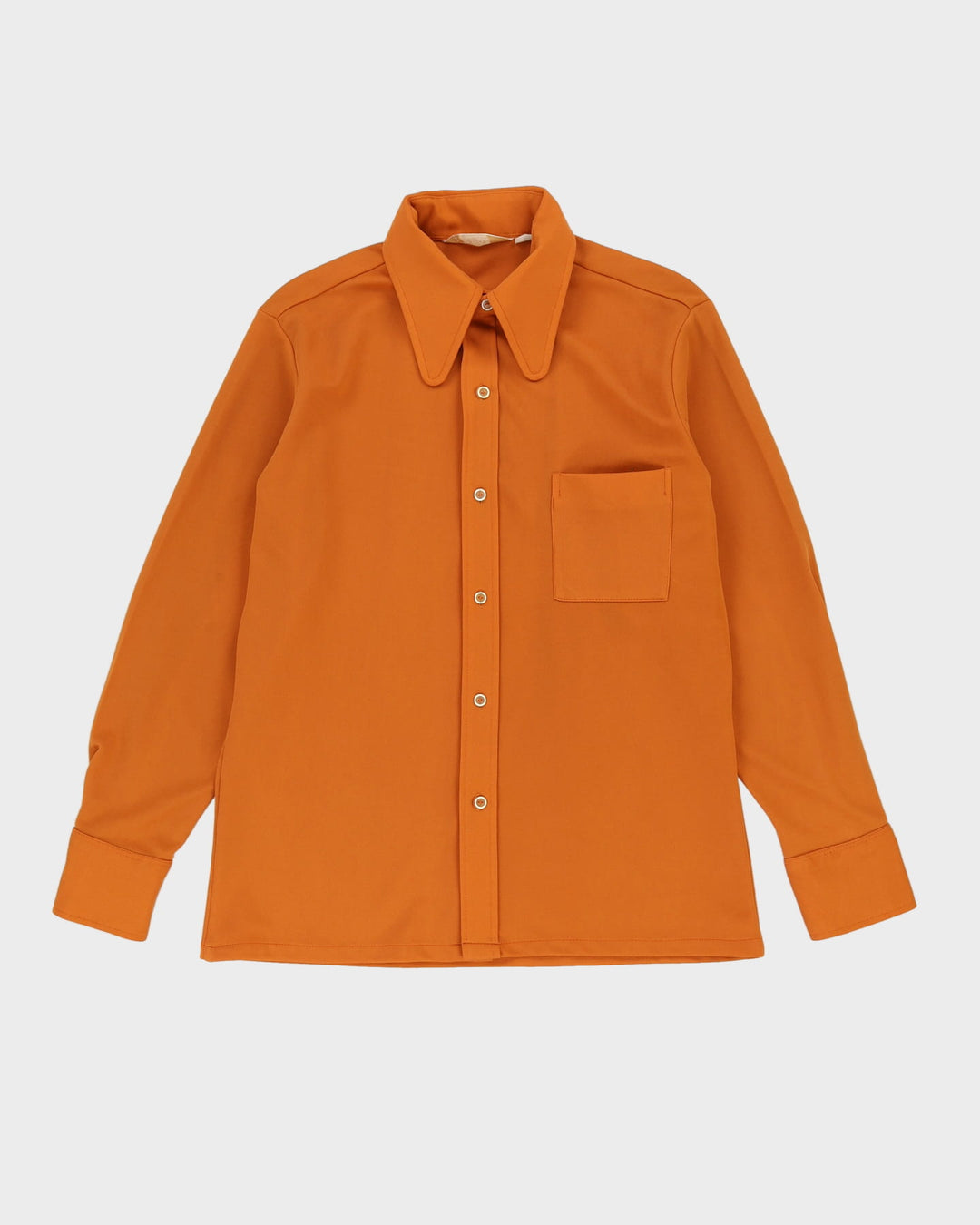 Vintage 70s Orange Polyester Long-Sleeve Shirt - L