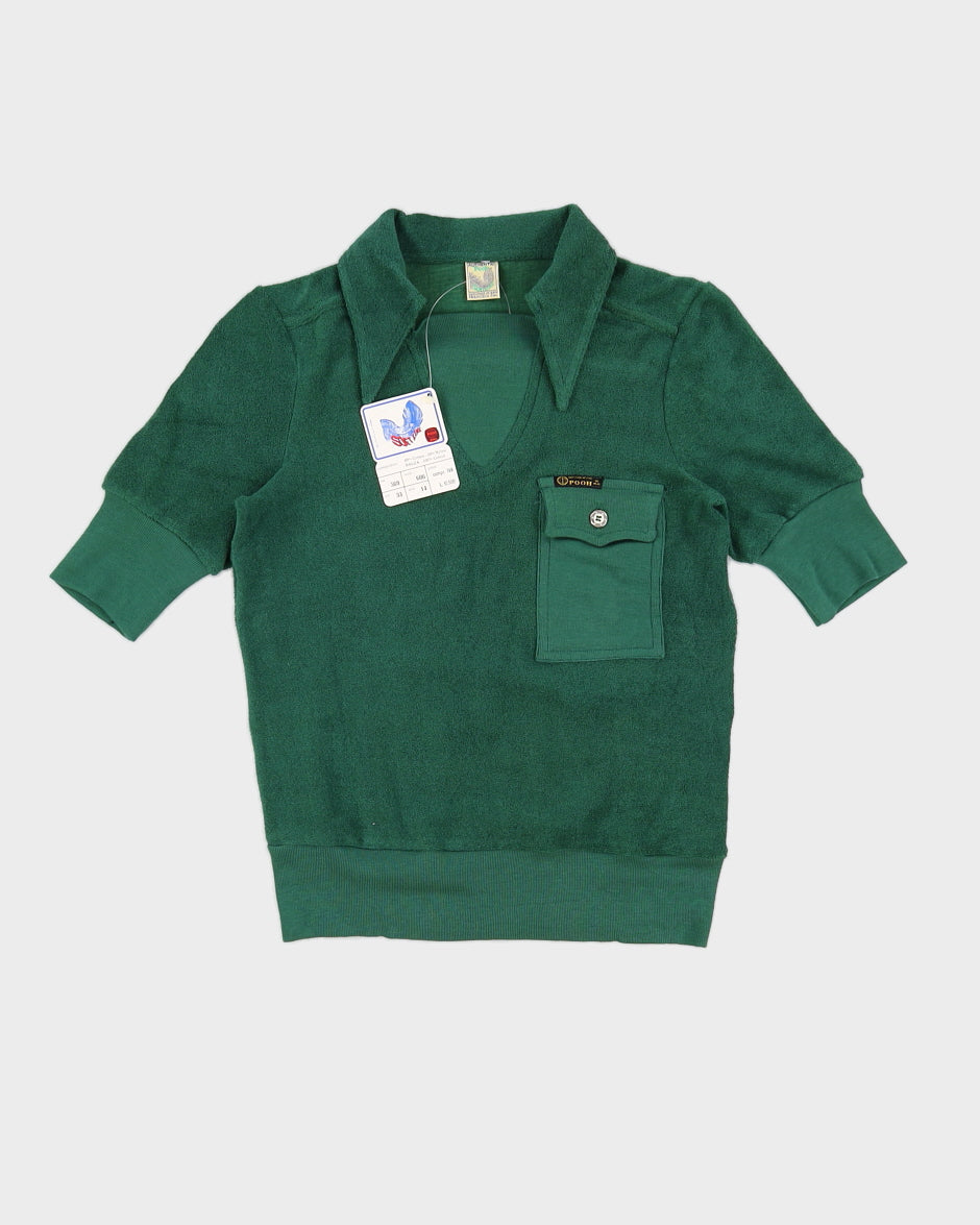 Vintage 70s Pooh Jeans Green Terry Towelling Top - XS/S