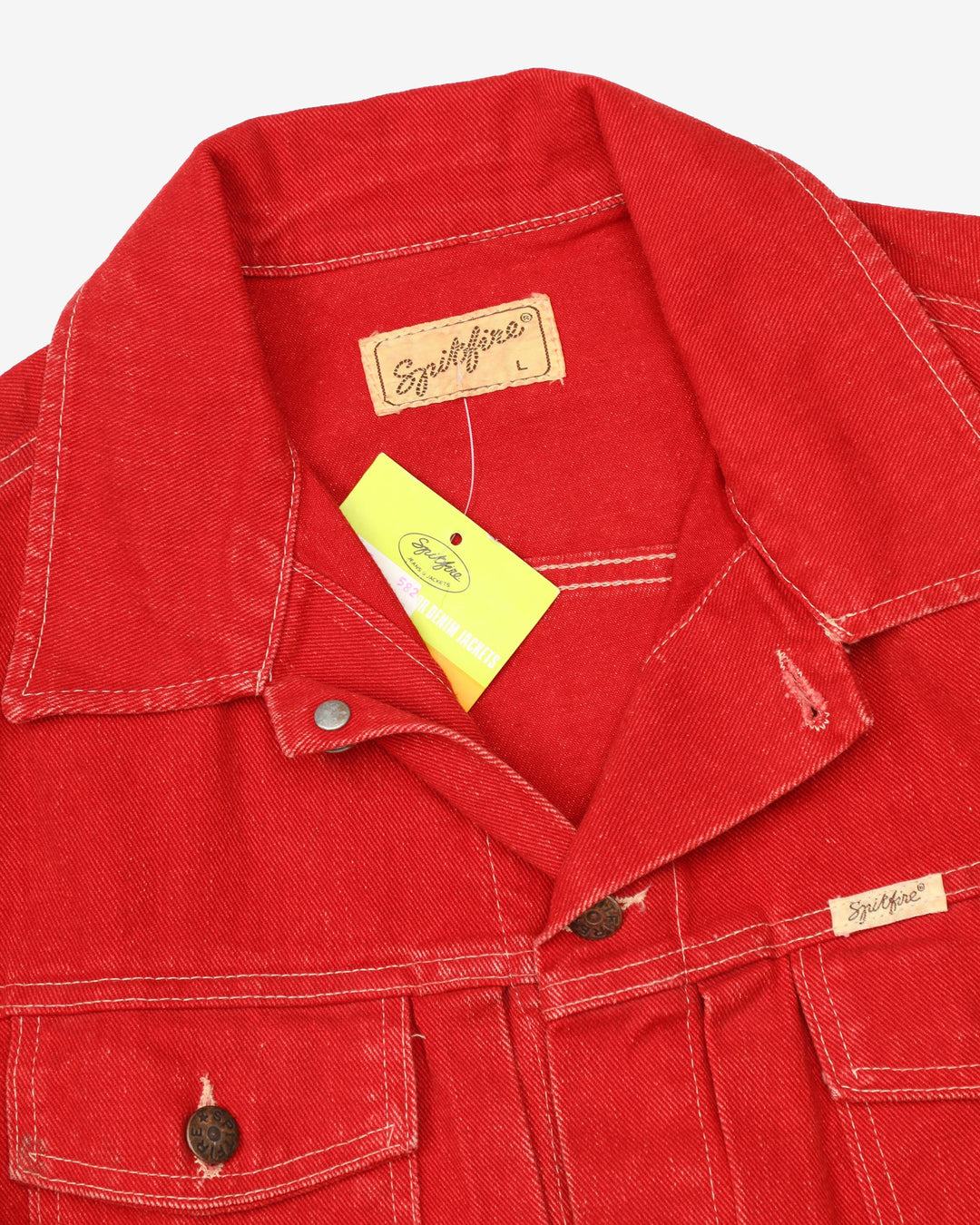 Vintage 70s Spitfire Deadstock With Tags Red Denim Jacket - M