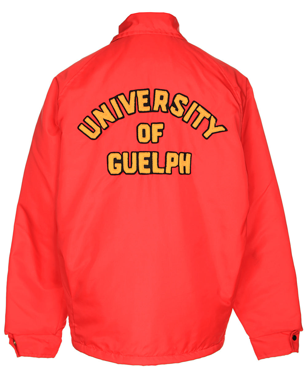Rouging in red! Rep The University of Guelph in this bold bomber. Featuring slit pockets, zip closure, buttoned cuffs for adjustable fit. Warm quilted lining