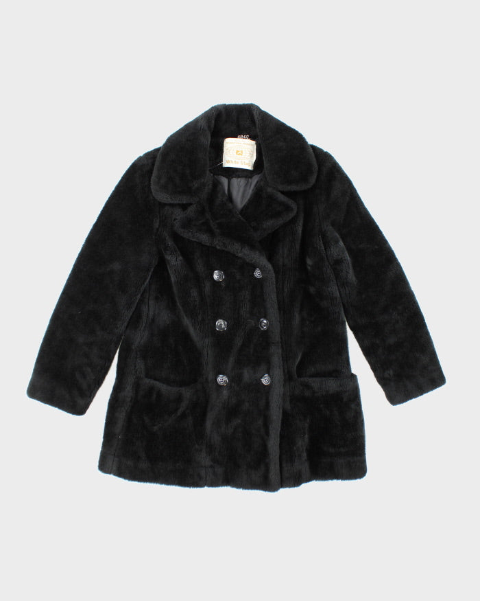 Vintage 70s White Stag Black Faux Fur Coat - L
