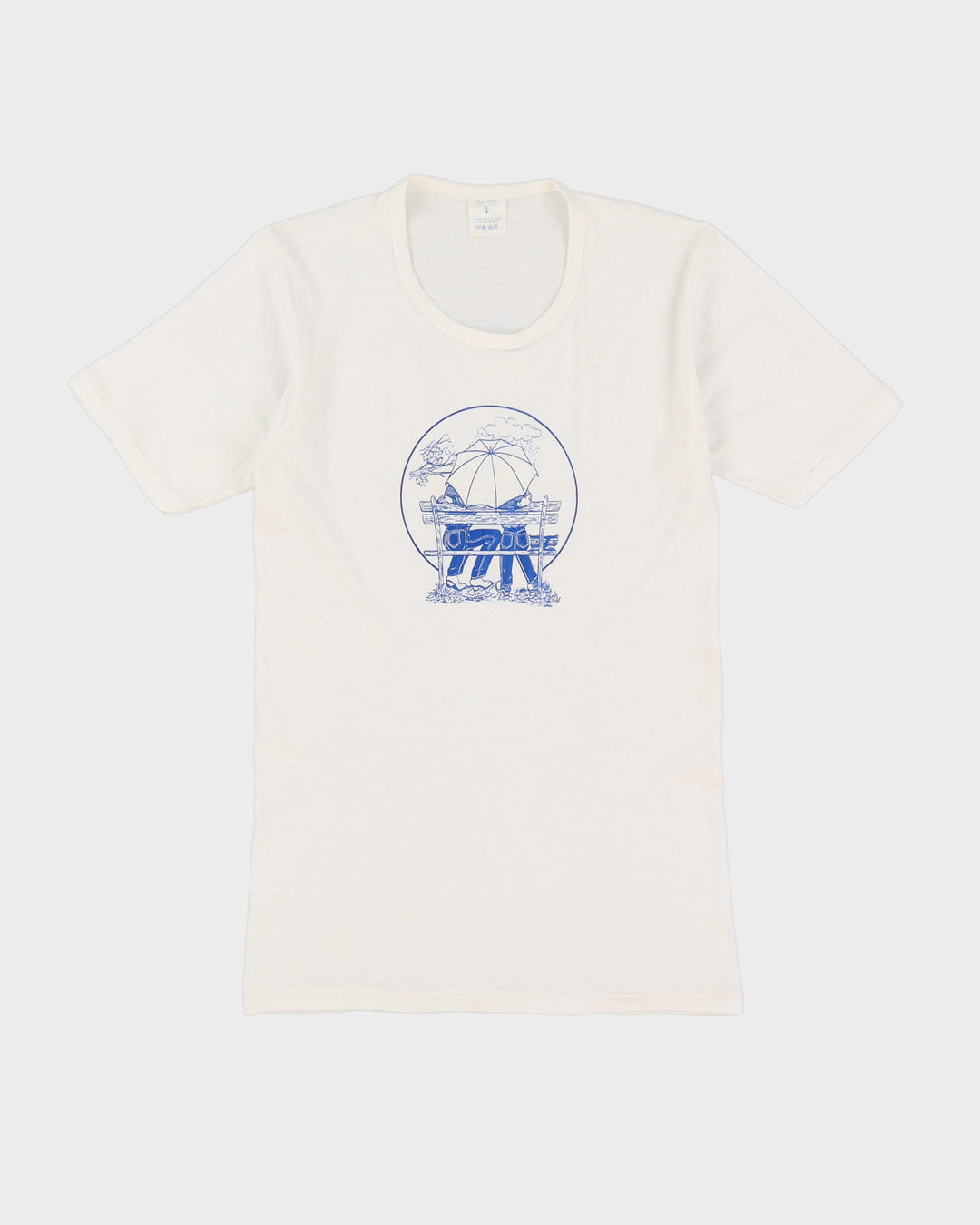 Vintage 70s Wrangler Print White Single Stitch Graphic T-Shirt - S