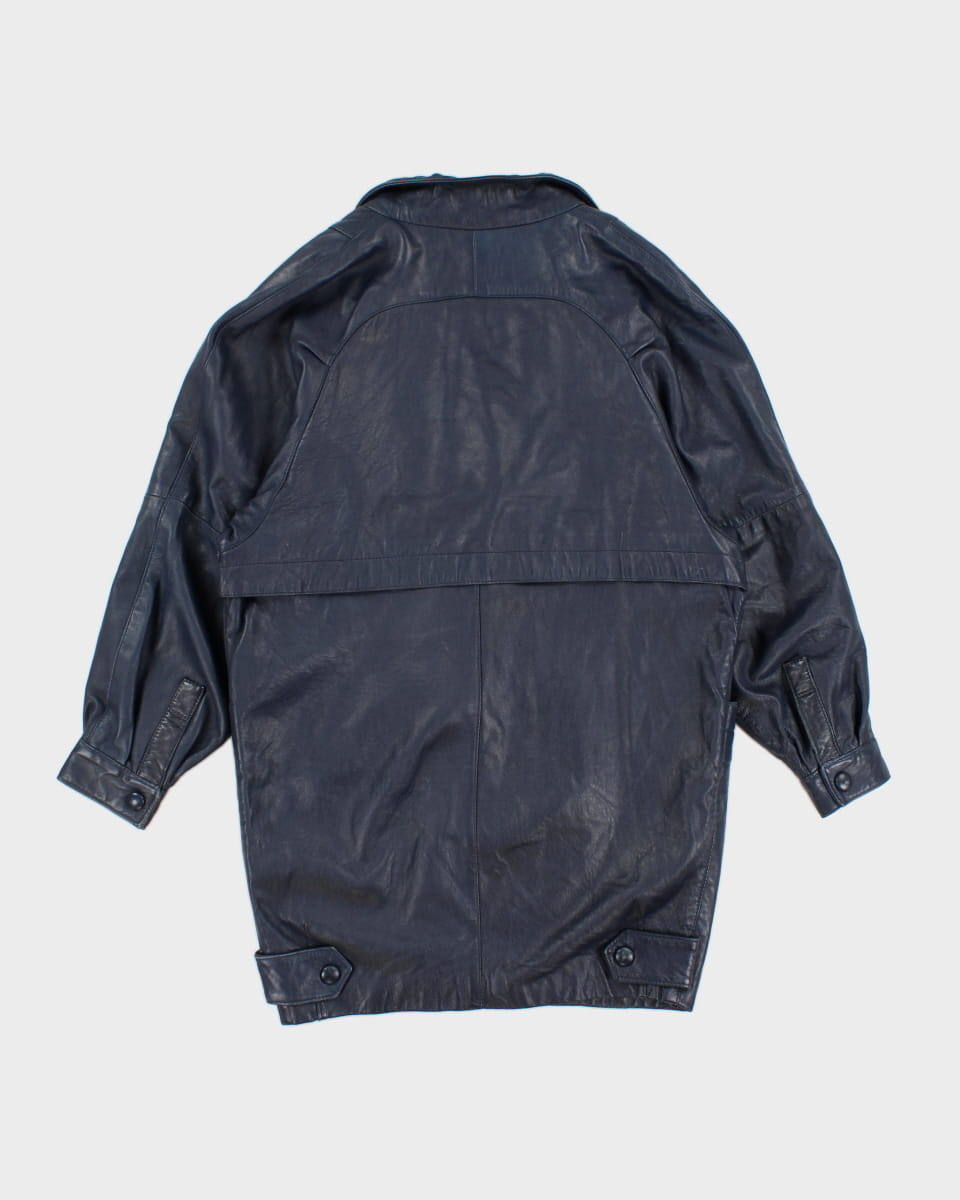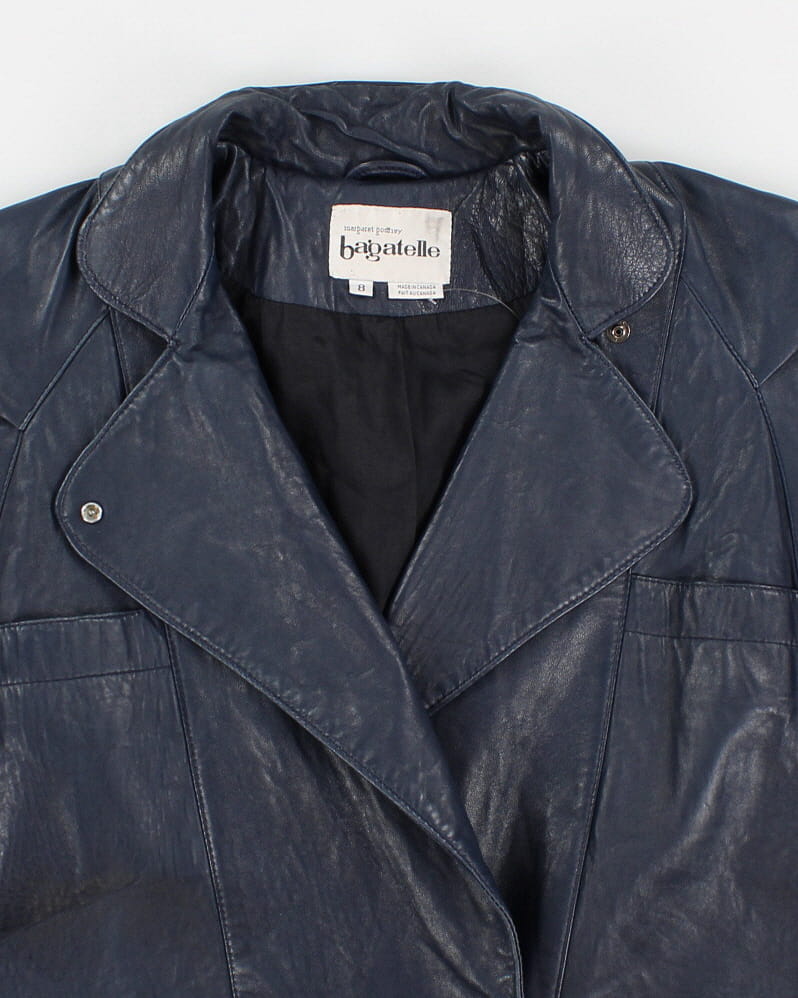 Vintage 80s Bagatelle Blue Leather Coat - M