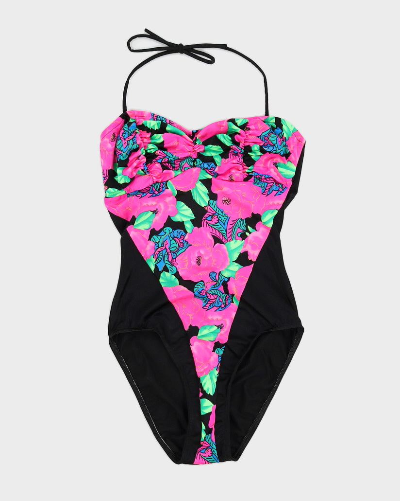 Vintage 80s Christina Pink Floral Halterneck One Piece - M/L