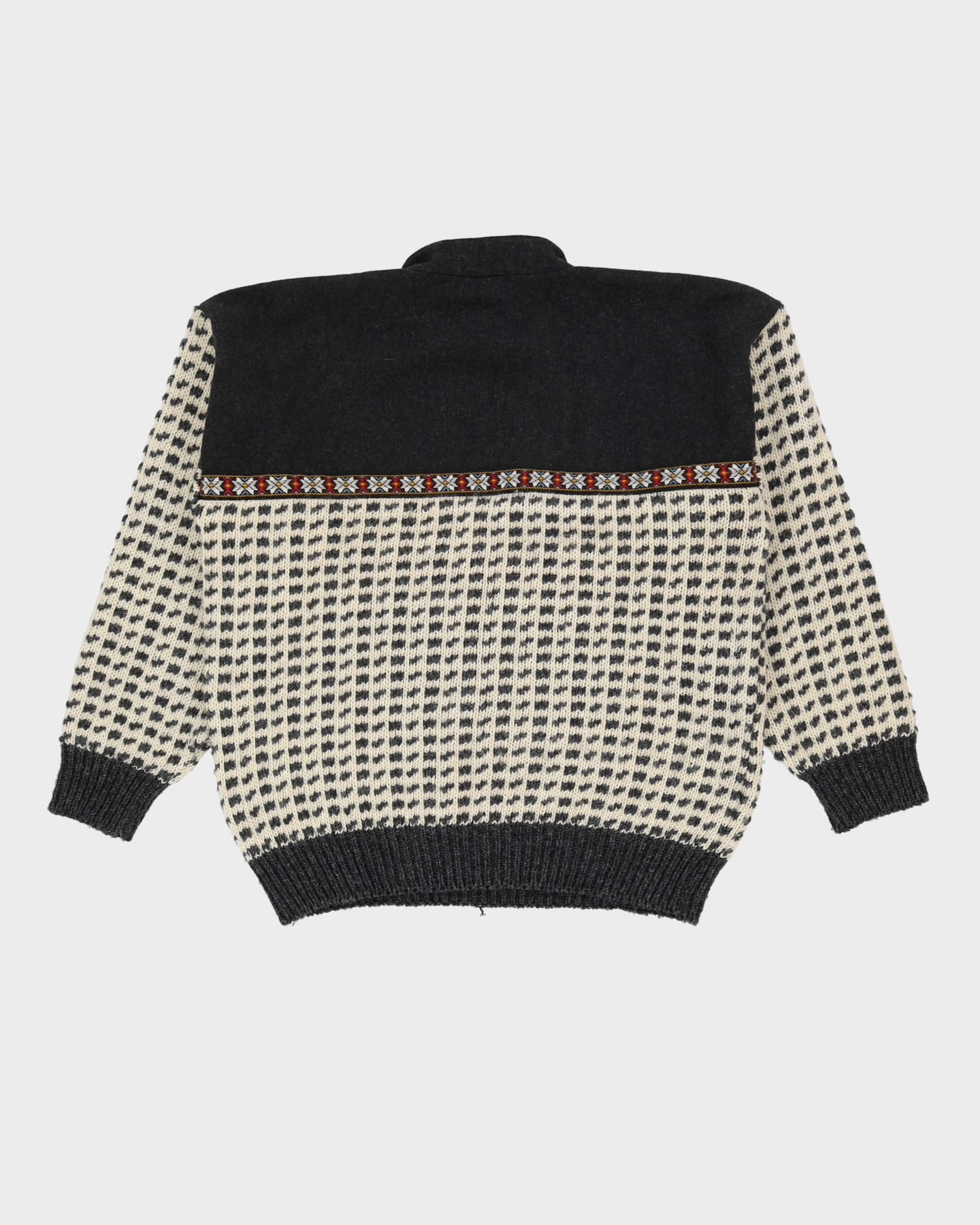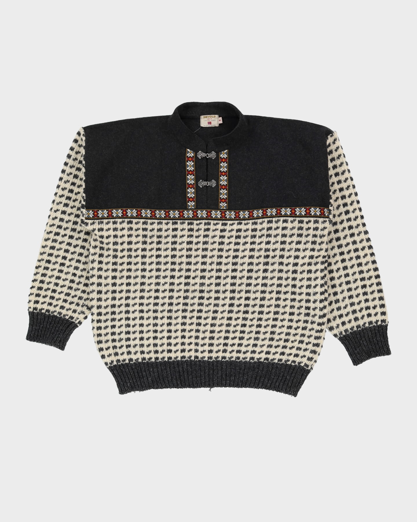 Vintage 80s Dark Grey / Cream Norwegian Heavy Quarter-Button Knit - XL
